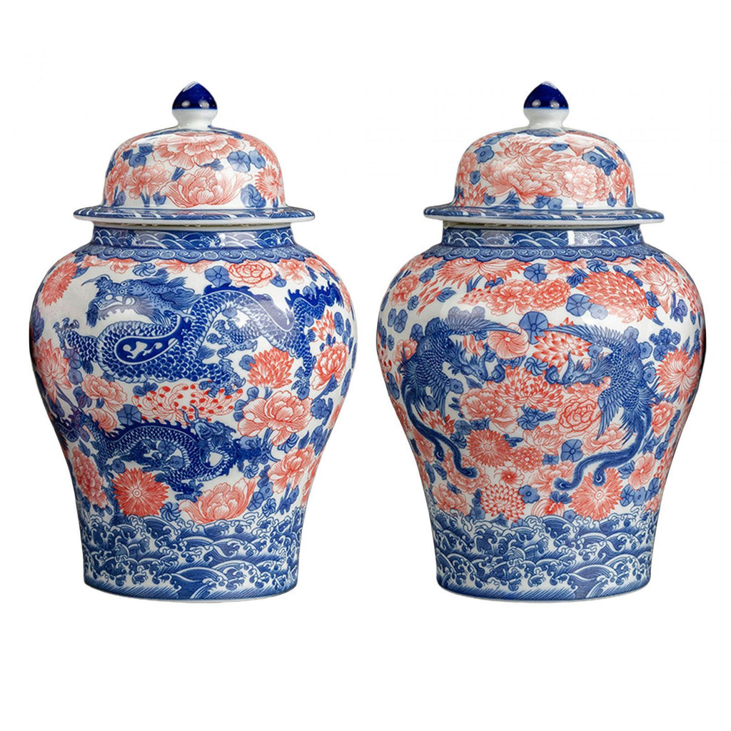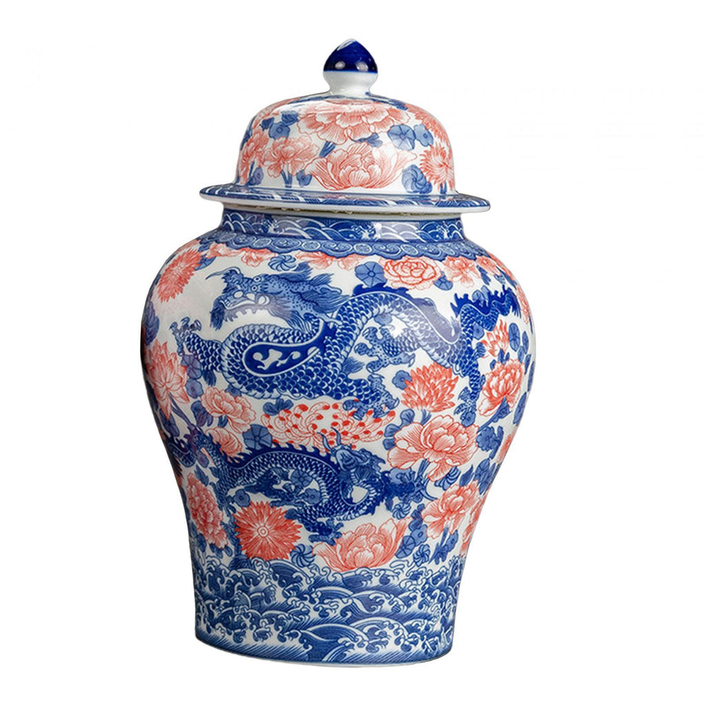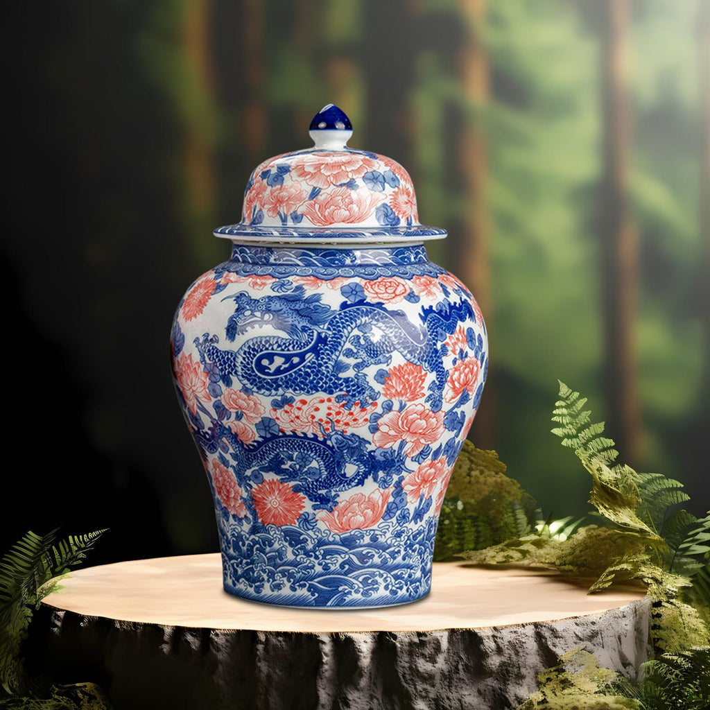 Maxbell Ginger Jar Chinese 1300ml Ceramic Porcelain Storage Jar for Office Home Gift dragon
