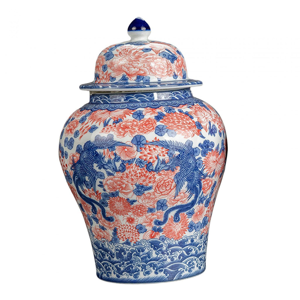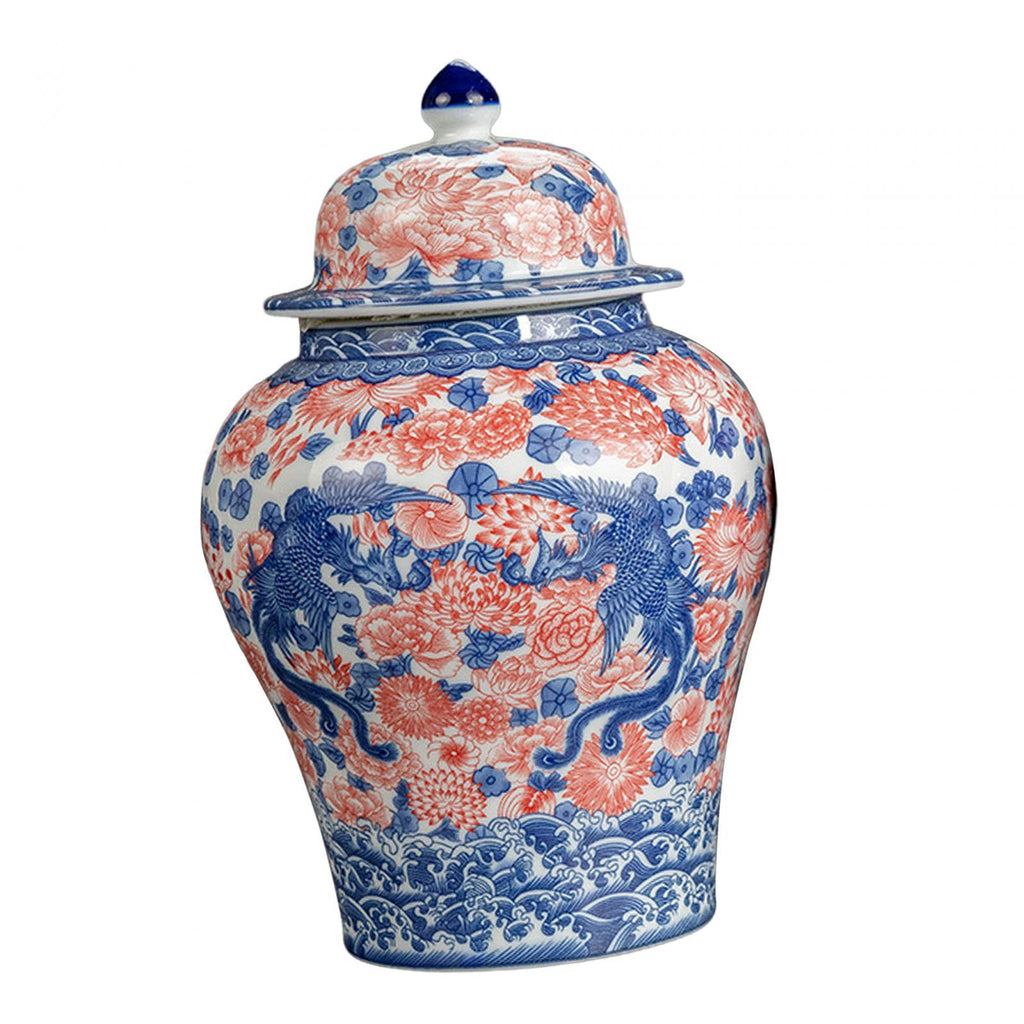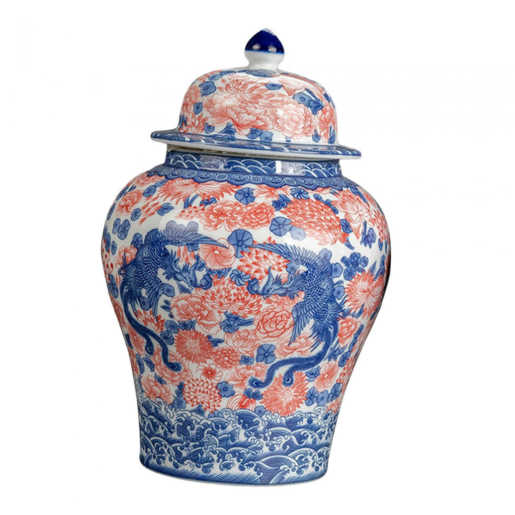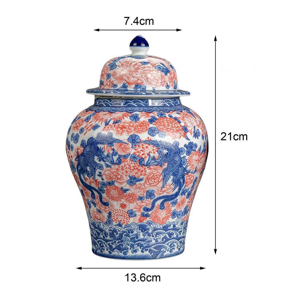 Maxbell Ginger Jar Chinese 1300ml Ceramic Porcelain Storage Jar for Office Home Gift phoenix