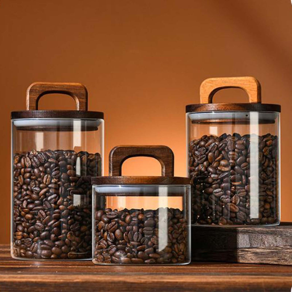 Material : The storage jars are made high grade clear borosilicate glass,the airtight lids are made from wood,which is durable