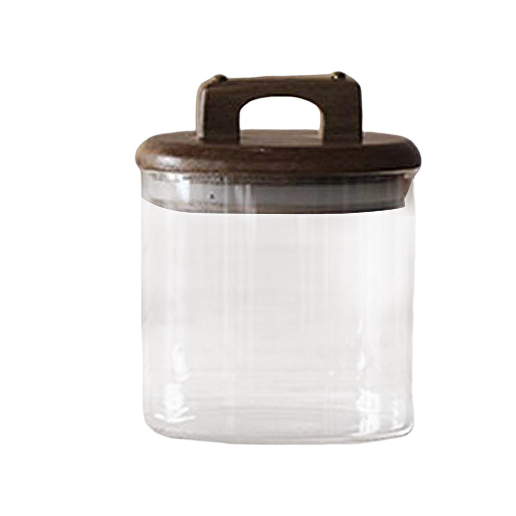 Maxbell Glass Storage Container Transparent Sealed Wooden Lid food tea 700ml