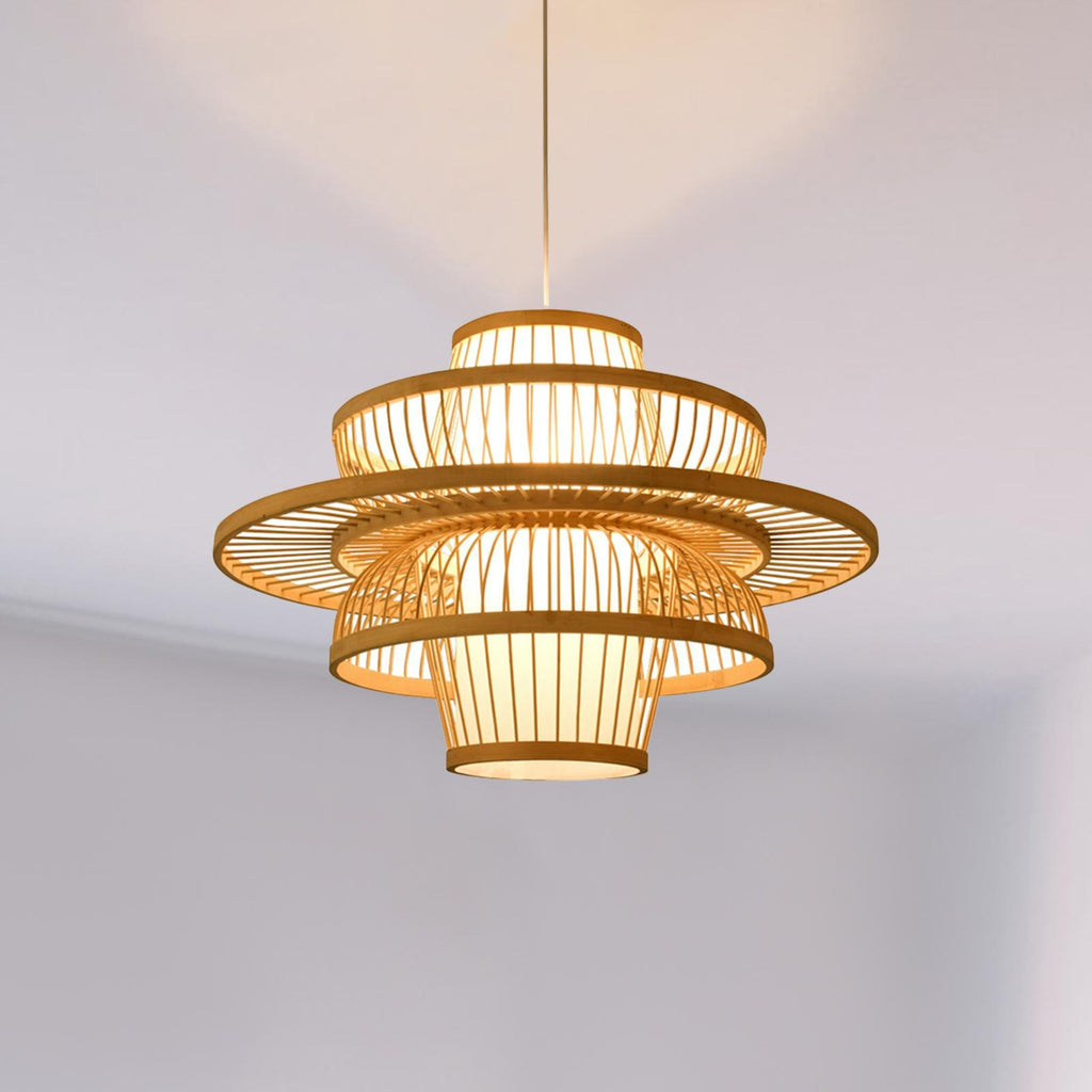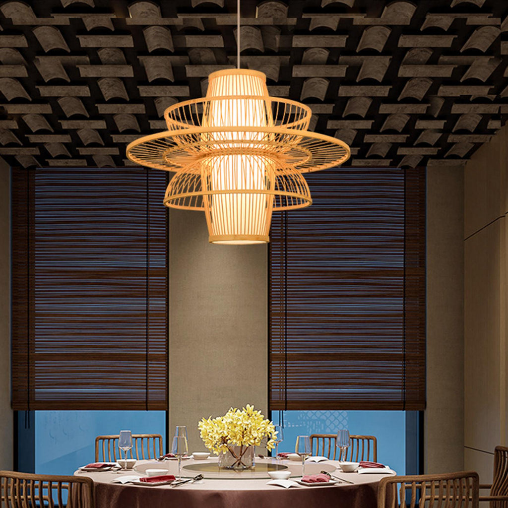 HIGH QUALITY: The pendant lamp shade is made of bamboo, durable, elegant and unique design with artistic