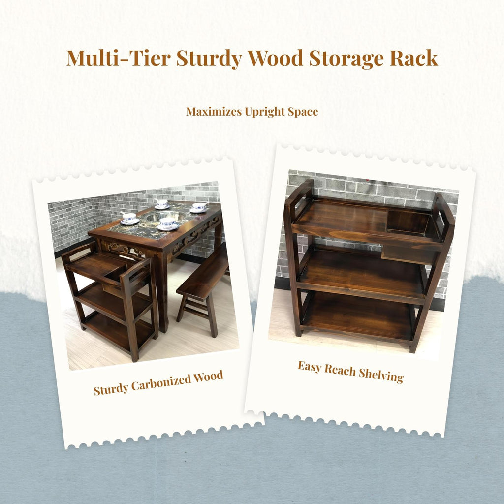 【Adaptable Hardwood Food Shelf】This multi-tier hardwood shelf is perfect for restaurants, hotels, and commercial kitchens, providing a practical solution for organizing vegetables, dishes, and tea utility items. 【Sturdy and High-Quality Construction】Made from carbonized hardwood, this rack guarantees long durability and can handle substantial loads, making it perfect for busy dining environments. 【Space-Saving Multitier Design】The tiered design maximizes storage capacity, enabling efficient placement of food, utensils, and supplies in hot pot restaurants or utility spaces. 【Modern and Functional Utility】Blending modern design with dependable functionality, this shelf elevates the look of any restaurant or kitchen while offering practical storage. 【Easy Assembly and Maintenance】Engineered for quick assembly and easy cleaning, this commercial-grade shelf is a cost-effective solution for food utility businesses.Specification: