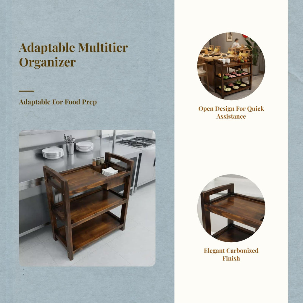 hardwood Wood Multi-Tier Food Shelf, Restaurant Utility Rack, Commercial Kitchen Storage