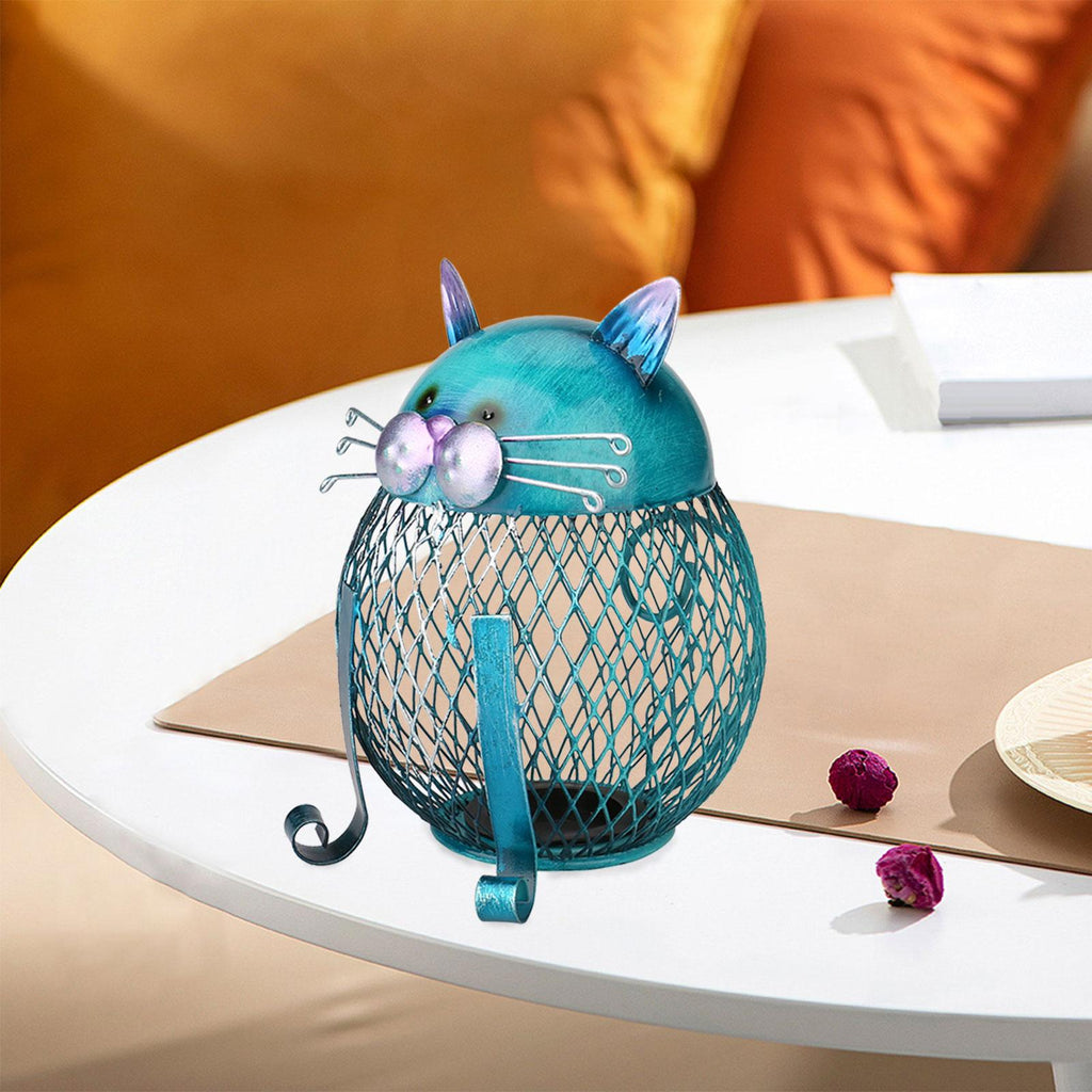 【Delicate Workmanship】Metal Cat Hollowed Out Money Bank can be seen through, hand painted with environmentally friendly paint