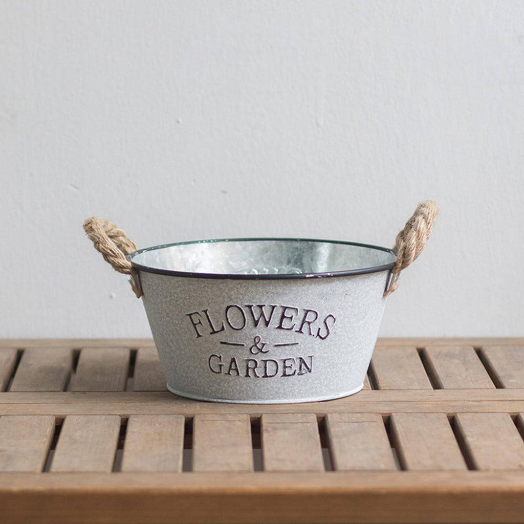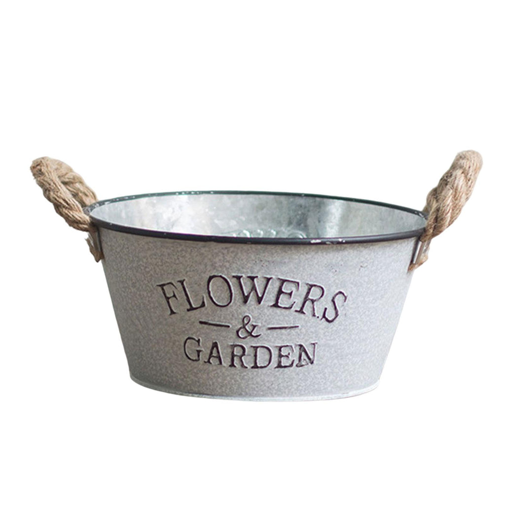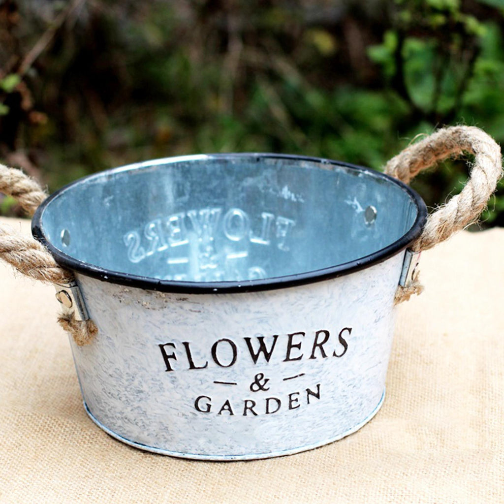 FLOWERS POT: Iron Flowers Pot with rope handle, easily carrying.