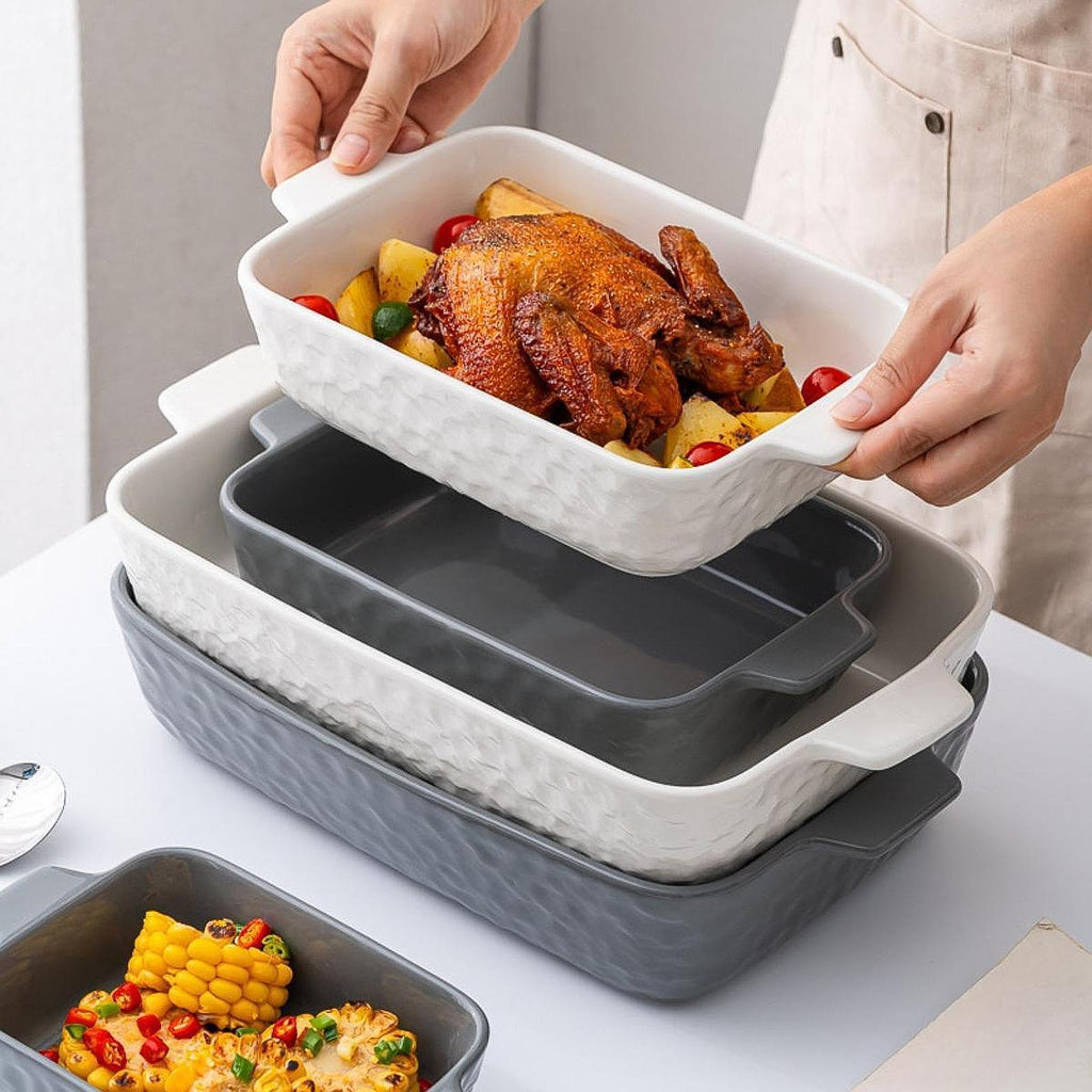 【Material】: The Baking Pan is made from ceramic material, baking tray is sturdy. it can withstand high temperatures and are easy to clean.