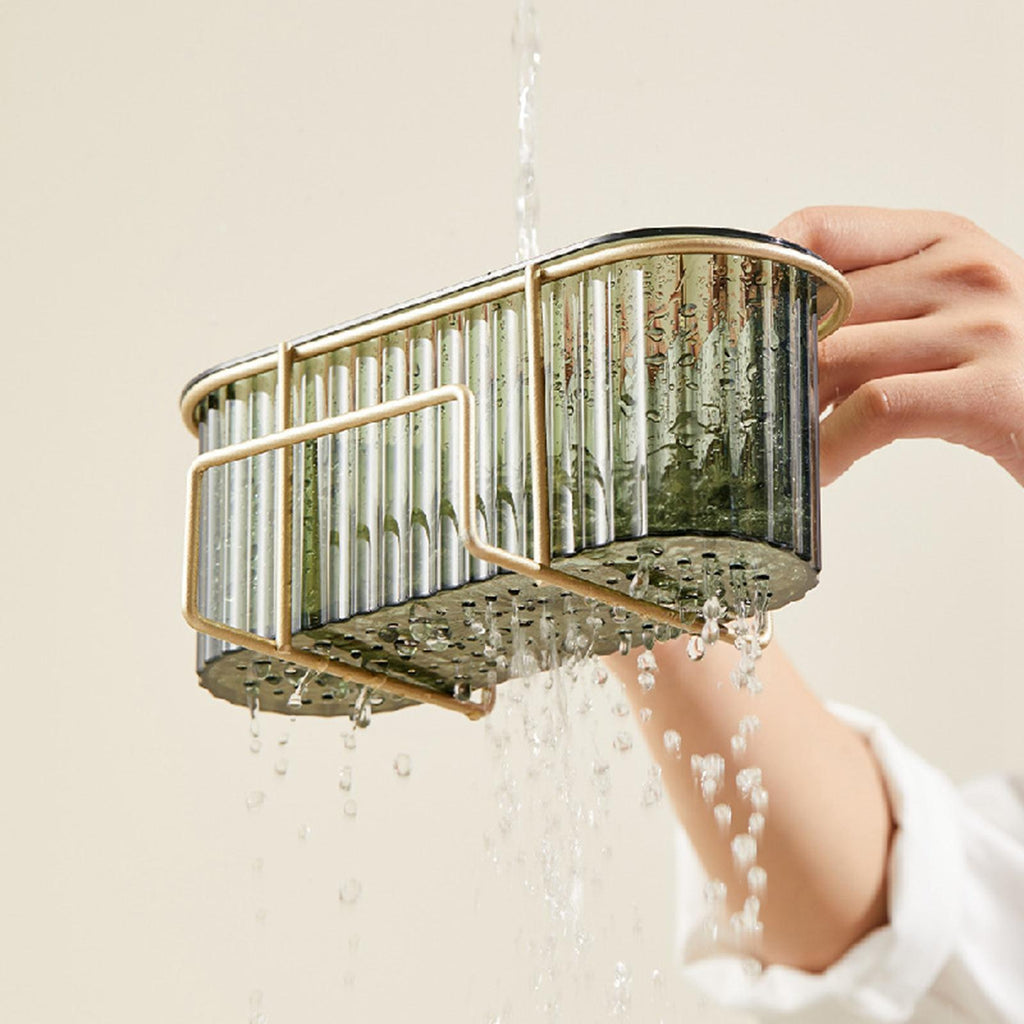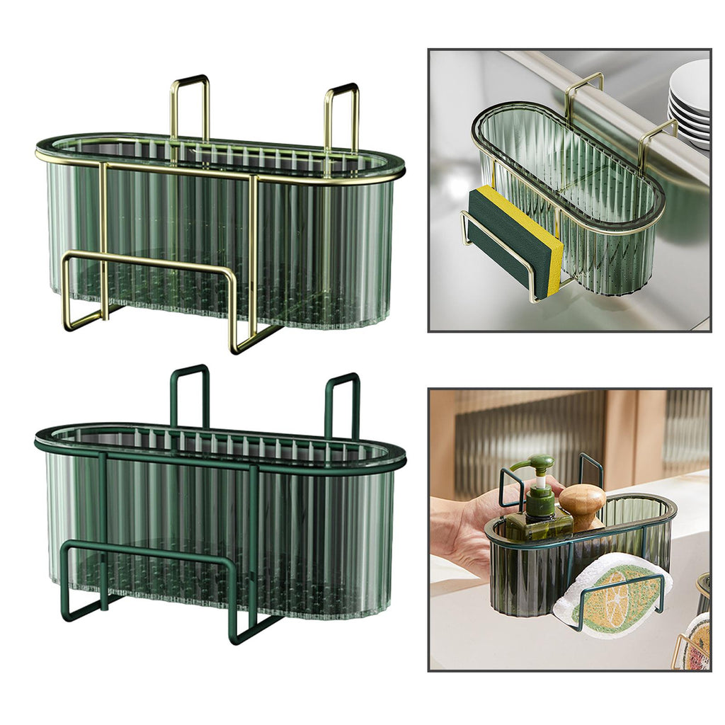 Maxbell Kitchen Brush Holder Storage Rack Practical Sink Drain Dish Rack for Utensil Aureate dark green