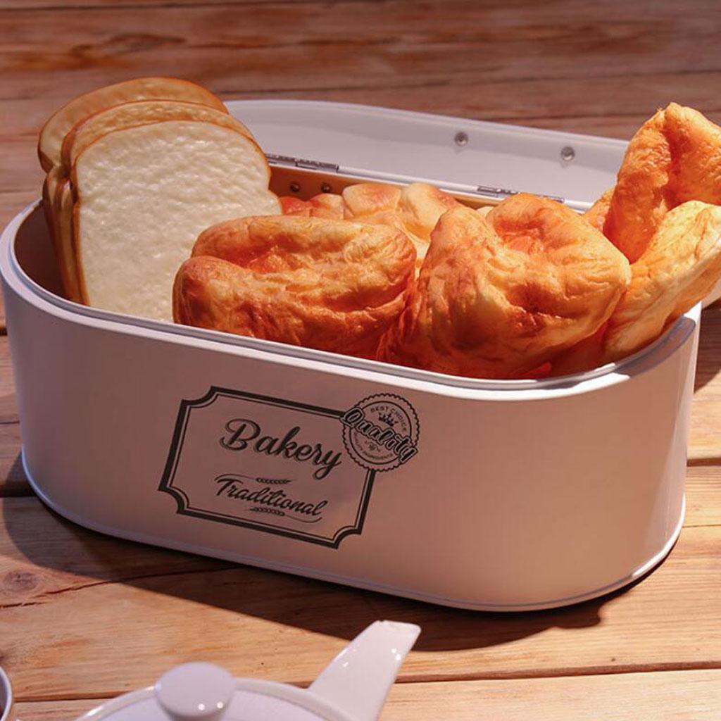 Maxbell Kitchen Metal Bread Box Countertop Bread Storage Bin Container w/Lid White