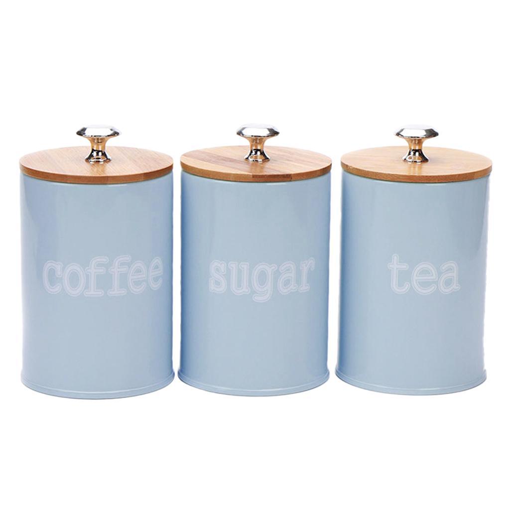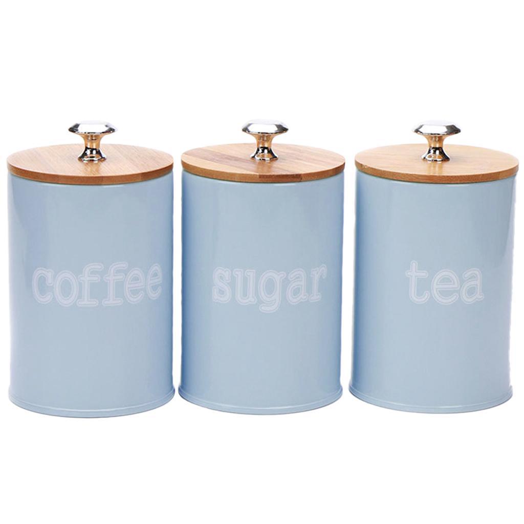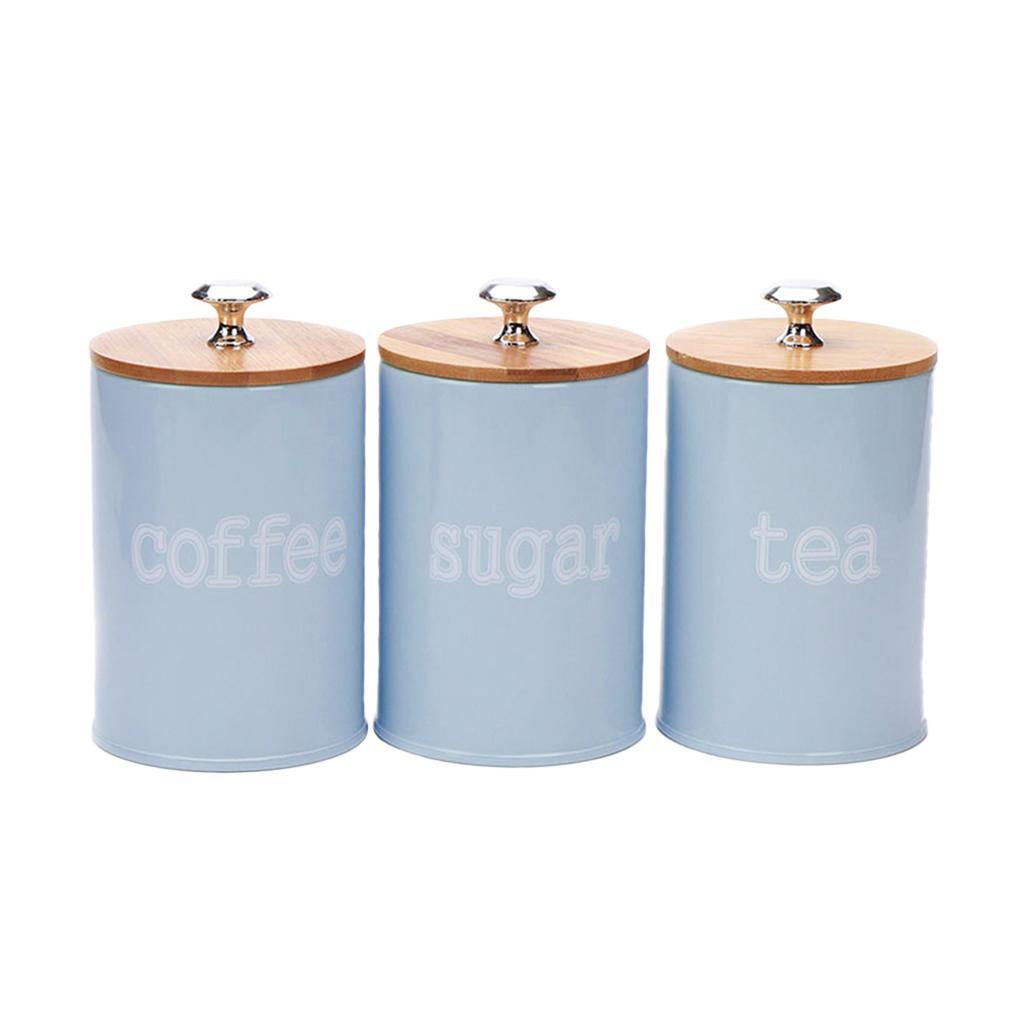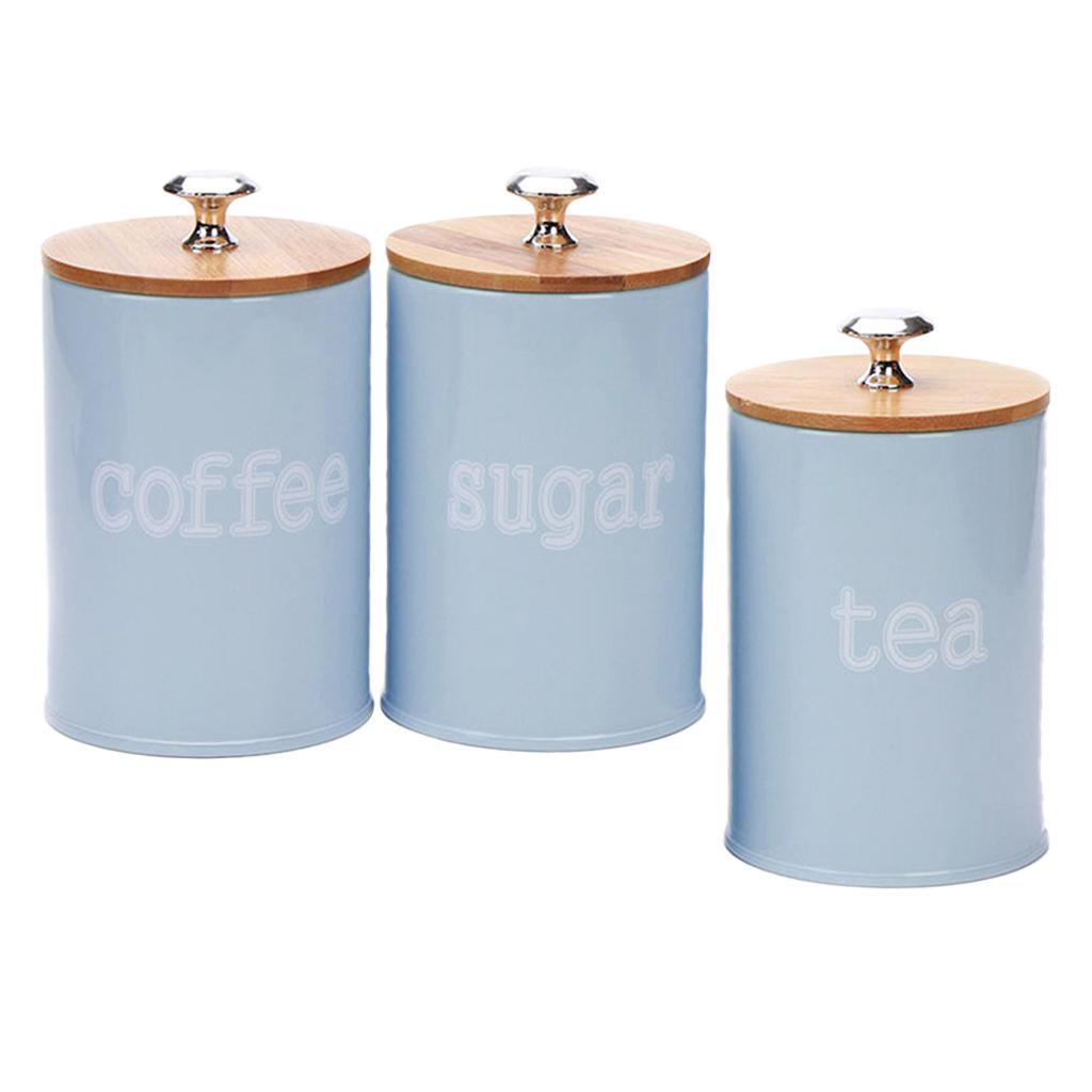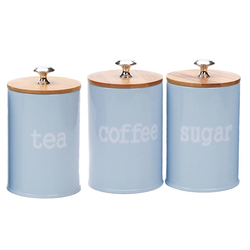 Set of 3 Air Tight Jars Zinc Alloy Storage Containers with Airtight Seal Bamboo Lids