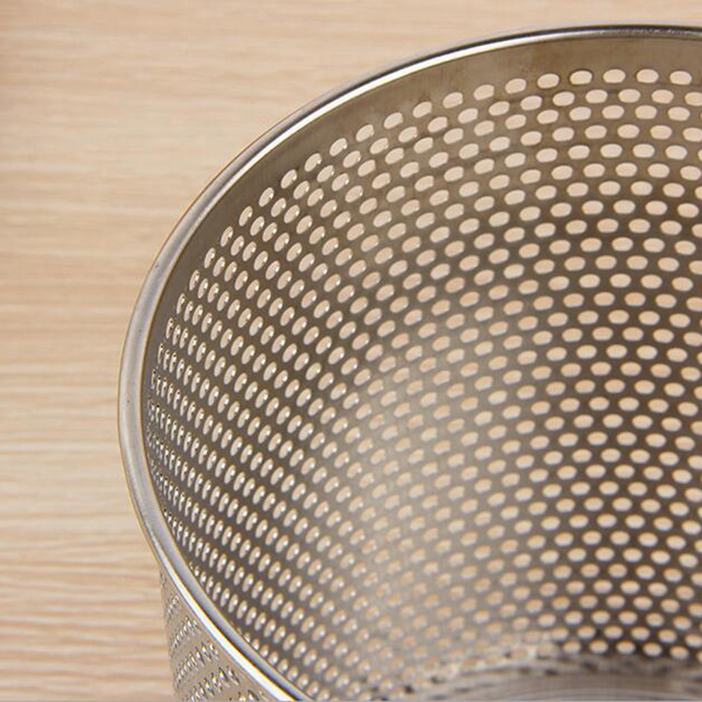 Made from stainless steel mesh with sturdy wire frame; wooden handle with hook conveniently hangs on the pot while in use and stores away easily