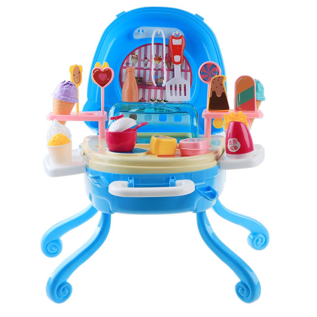 Max Kitchen Role Play Set Pretend Play Toy Kit for Kid with Portable Case Ice Cream Blue