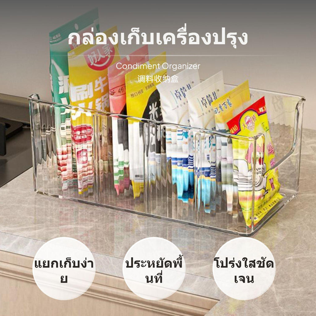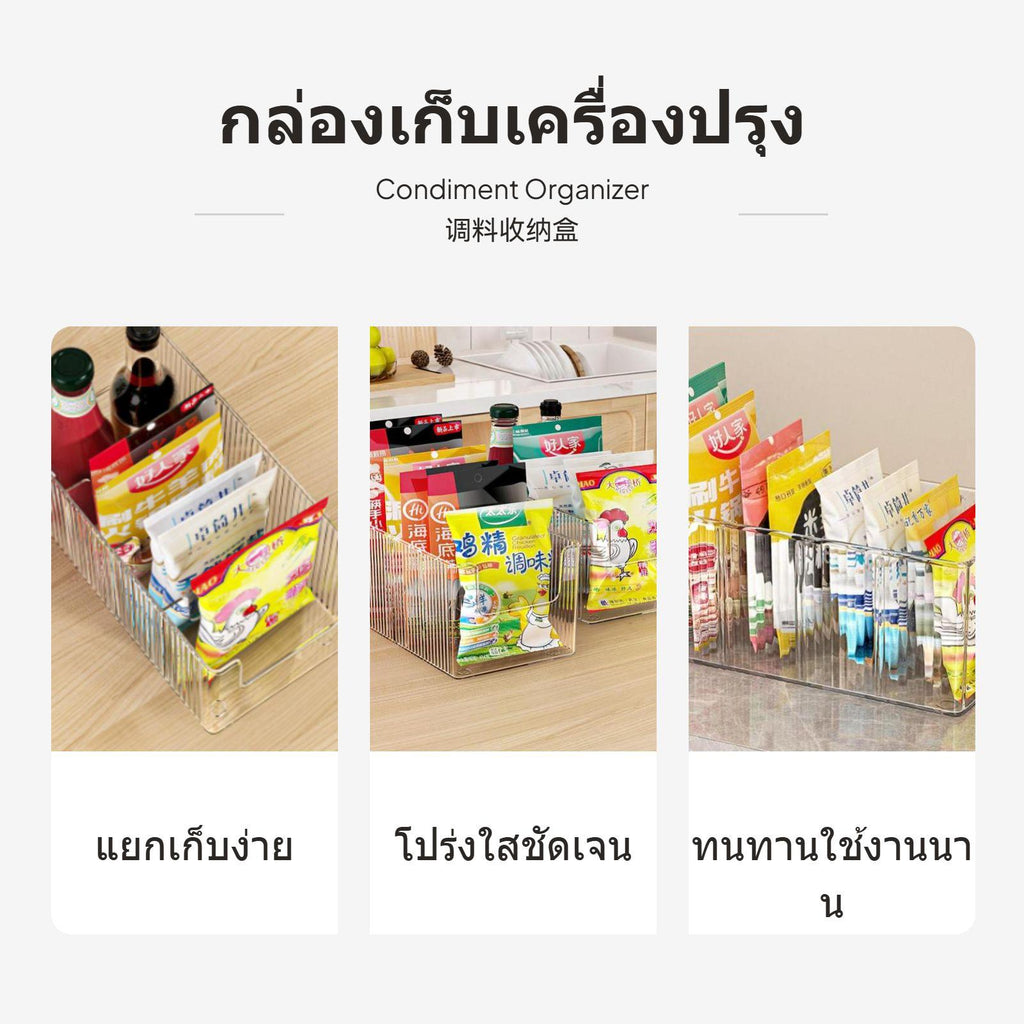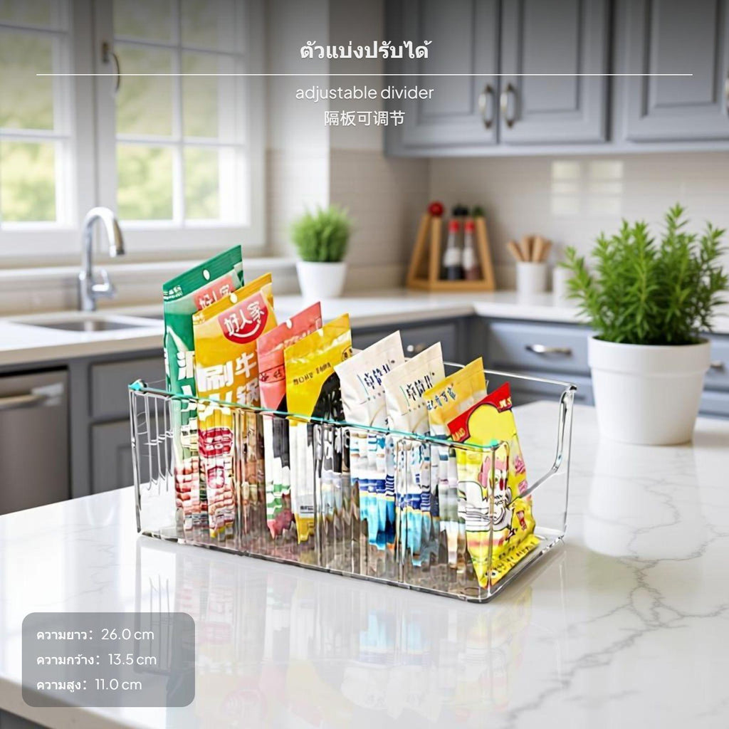[simple Kitchen Organization] This transparent PET kitchen seasoning organizer box provides a sleek, modern look while offering practical storage for seasonings, seasoning packets, and condiment jars.[Adjustable Divider Design] Featuring customizable and removable dividers, this storage box adapts to accommodate spices of varying sizes, ensuring orderly and efficient storage.[Space-saving Rectangular Design] Measuring 26cm x 13.5cm x 11cm, its space-efficient design accommodates perfectly on countertops, inside cabinets, or drawers, maximizing your kitchen space efficiently.[Perfect for Opened Spices] The upright compartment design prevents opened packets from spilling, maintaining cleanliness and orderliness in your kitchen.[Clear Visibility & Easy Accessibility] The transparent container provides instant visibility and simplifies the retrieval of stored items, reducing clutter and making your kitchen operations smoother.Specification: