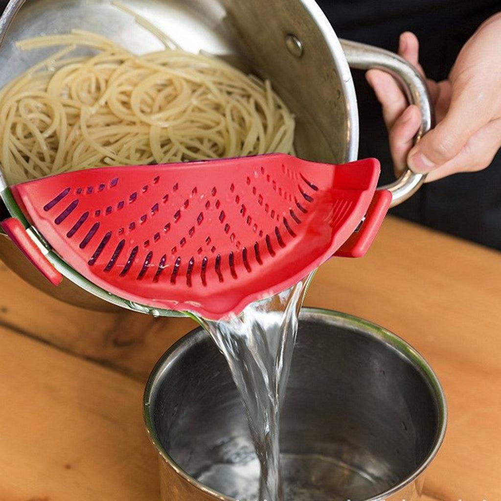 Maxbell Kitchen Silicone Food Pan Clip Pan Strainer Pot Drainer Sieve Colander Red