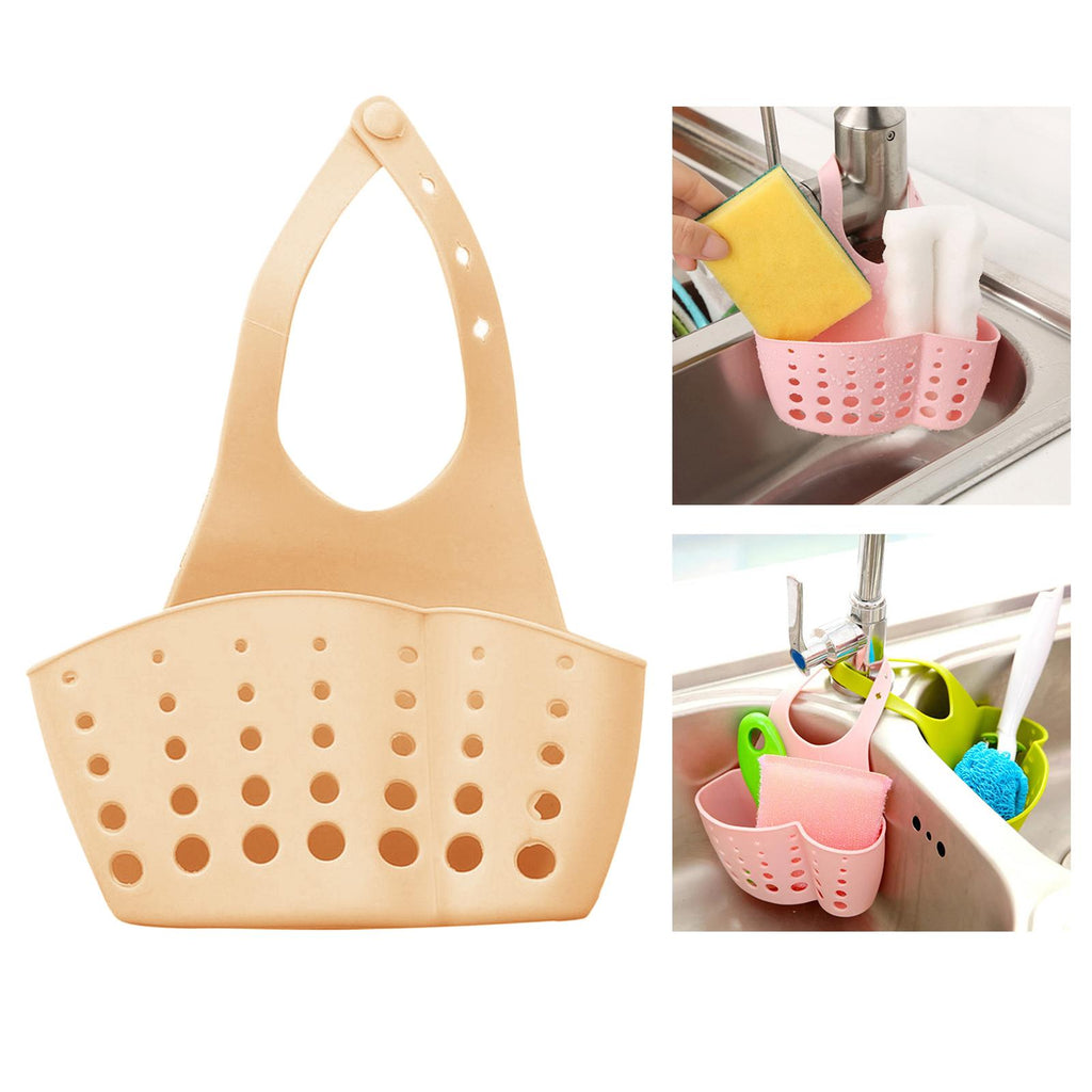 Maxbell Kitchen Sink Corner Hanging Drain Rack with Adjustable Button Khaki