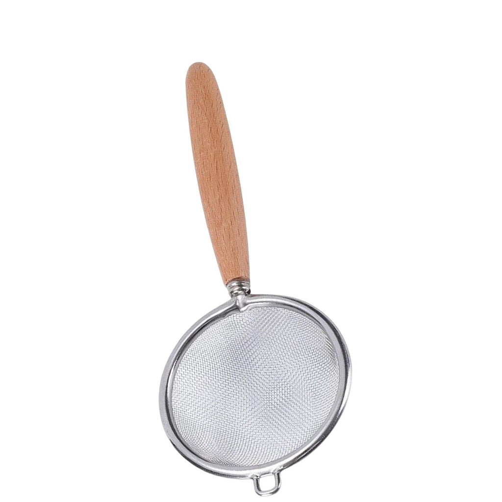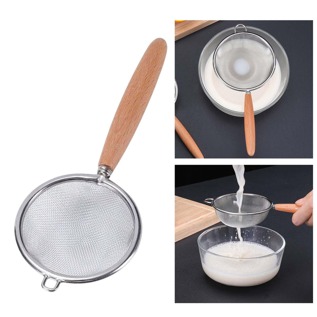 Material: Stainless Steel Mesh Colander, wood handle, and feel comfortable even for long periods of use.