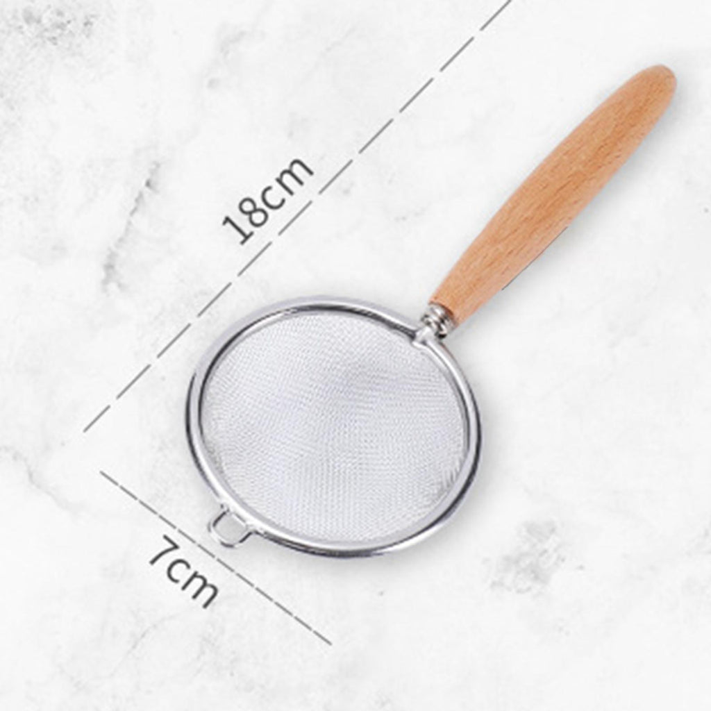 Material: Stainless Steel Mesh Colander, wood handle, and feel comfortable even for long periods of use.