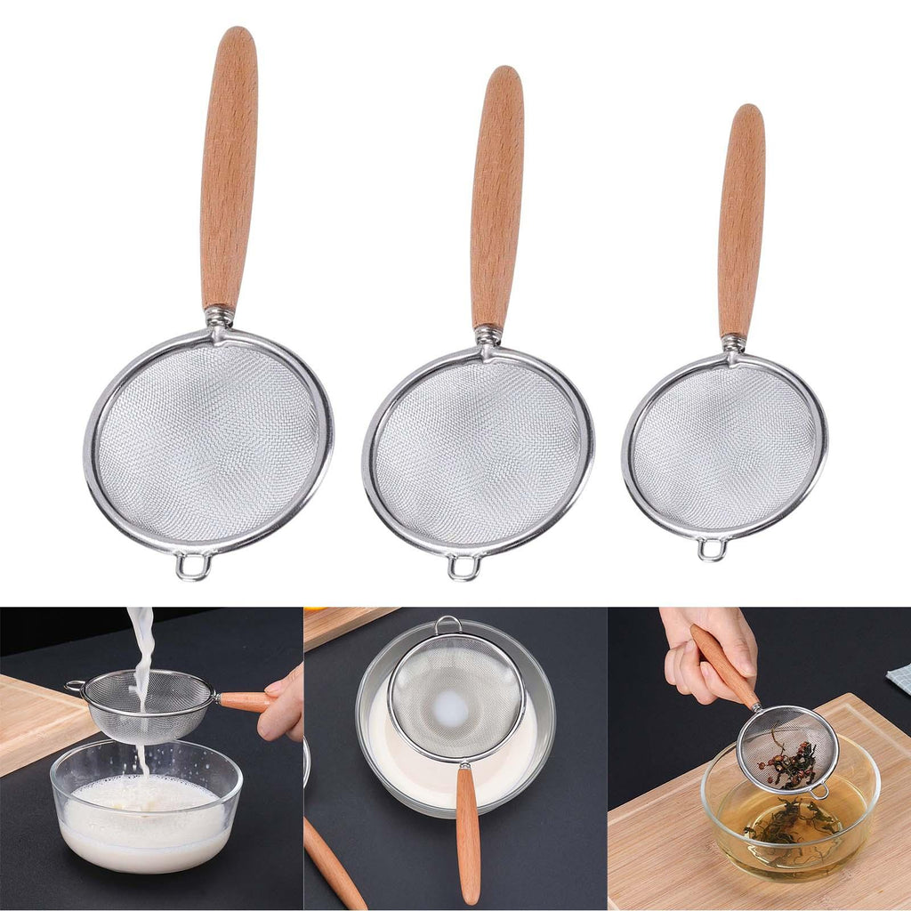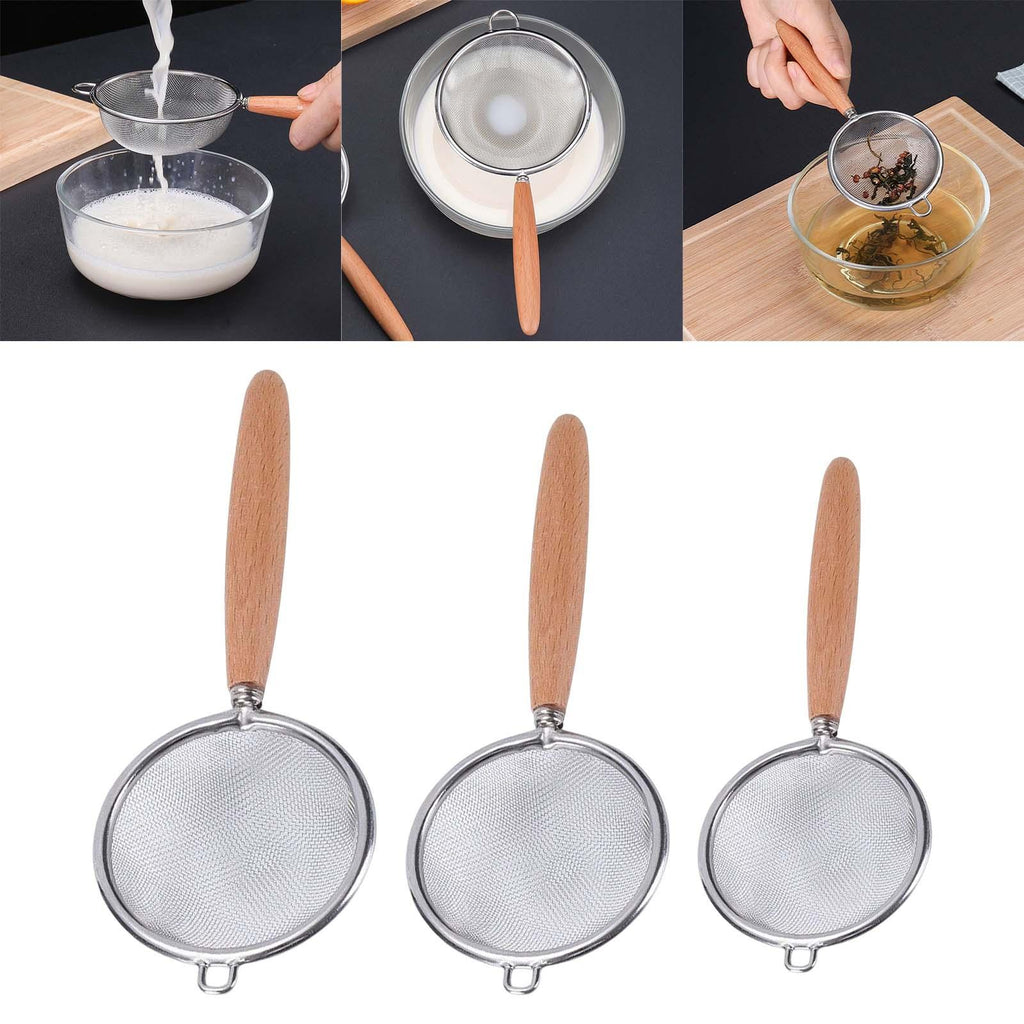 Function: fine mesh strainers for straining, sieving, sifting for baking, filtering and rinsing tasks, allows you to be more efficient in the kitchen for cooking baking.