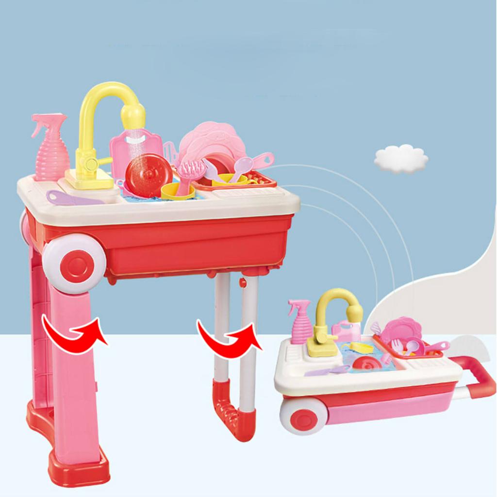 Dishwasher storage stand can be shrunk freely,let baby can play whether sitting on the ground or on the chair,suitcase shape, easy to carry.