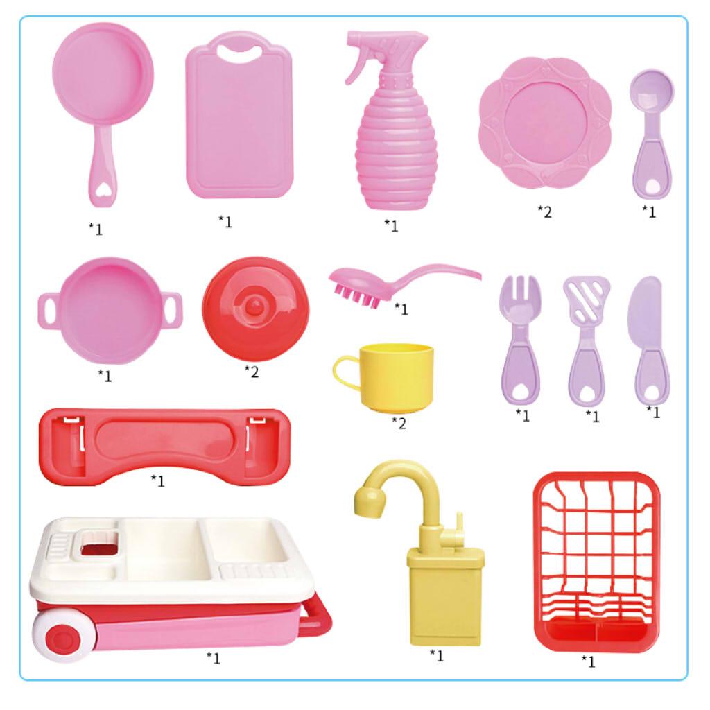 Maxbell Kitchen Toy Set Children Pretend Play Cooking Tool Cookware Accessories Pink