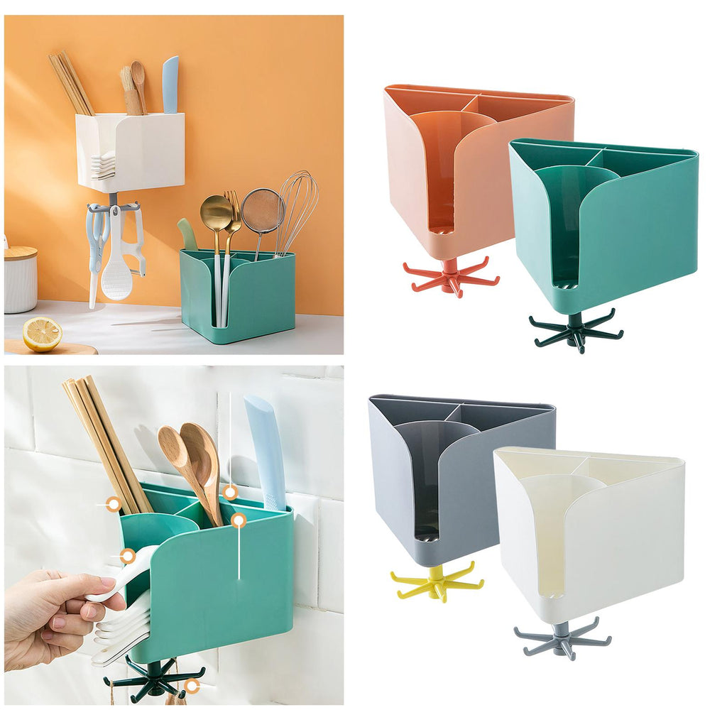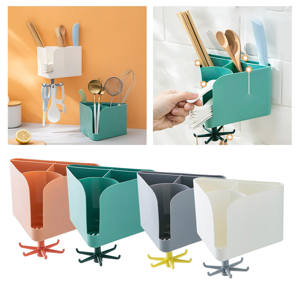 How to use: tear off the protective film of double sided adhesive tape, wipe the wall clean, and paste it on the wall without any trace; install the bottom along the card slot, fasten the chopstick cage along the card slot, install the chopstick cage, rotate the hook 360°, install It can be used after completion, (the effect is better after 24 hours after installation)