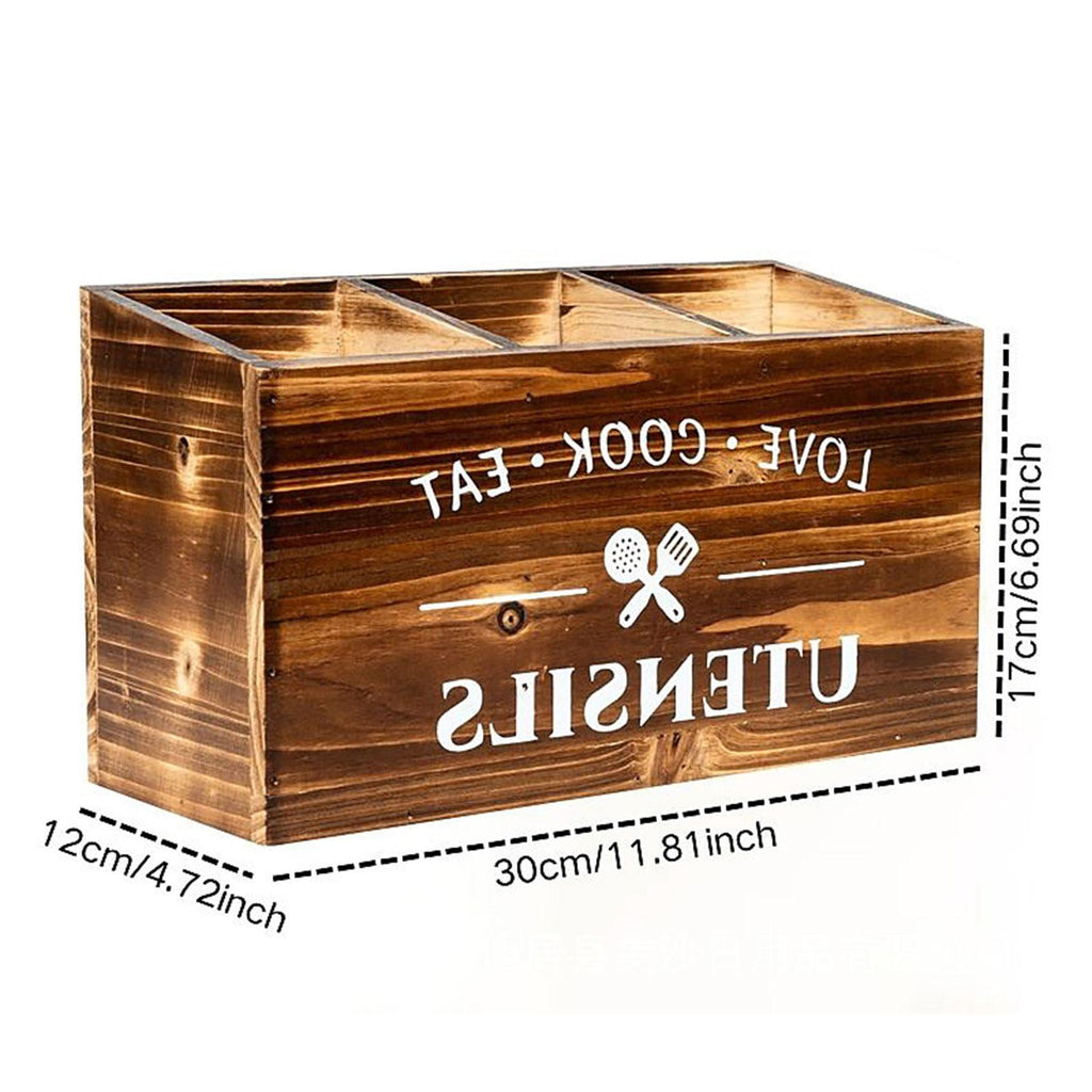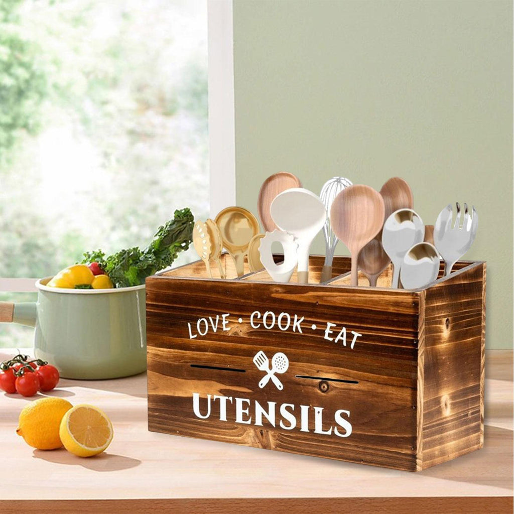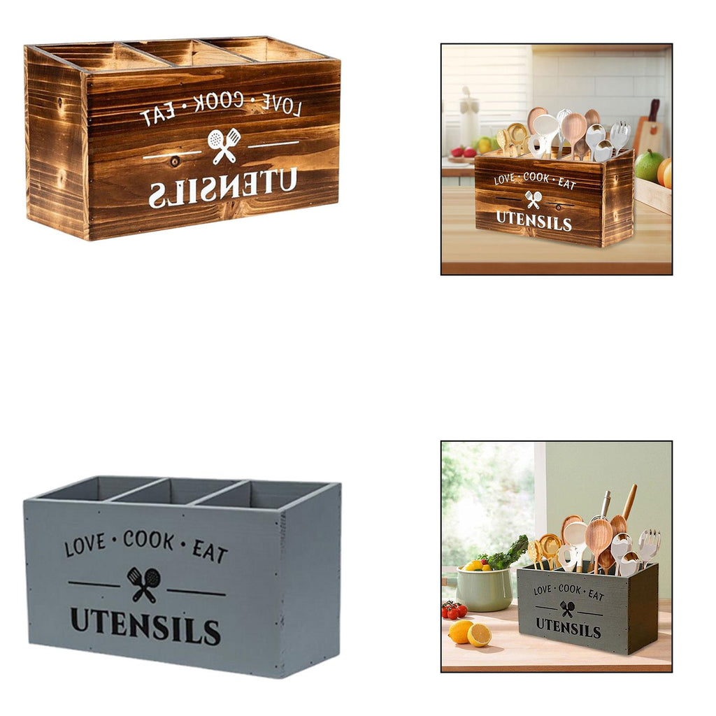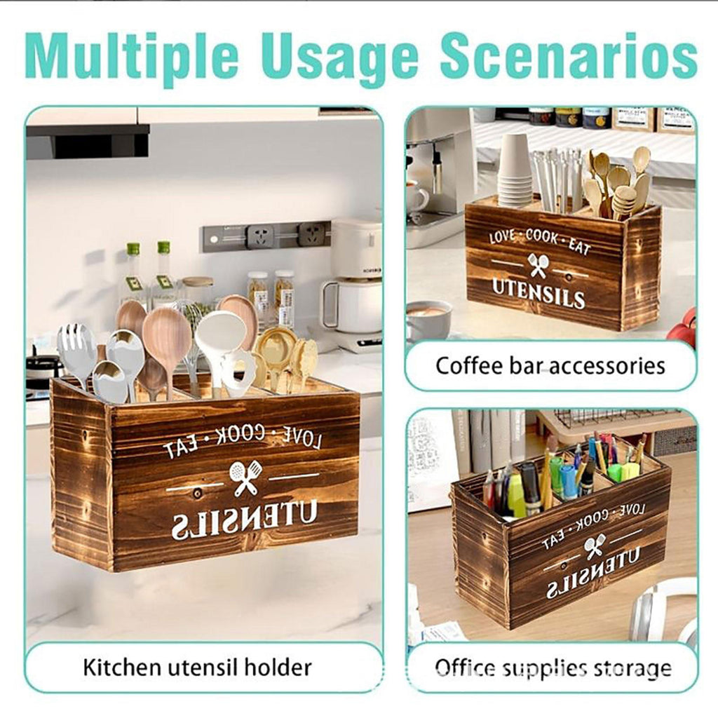 - 【Efficient Organization】: This wooden kitchen utensil organizer features three compartments, allowing you to neatly categorize and store your utensils for easy access and a tidy countertop. Dimensions: Approximately 30 cm x 12 cm x 17 cm / 11.81 inch x 4.72 inch x 6.69 inch