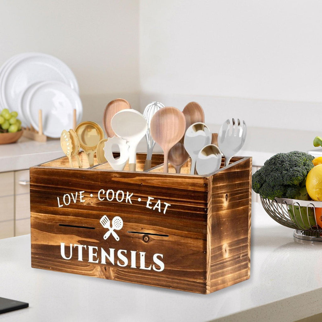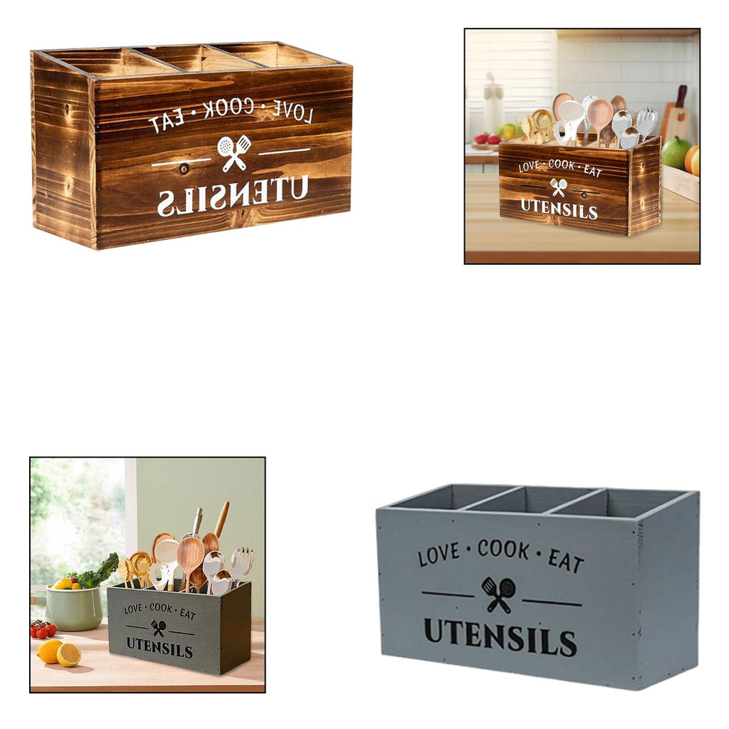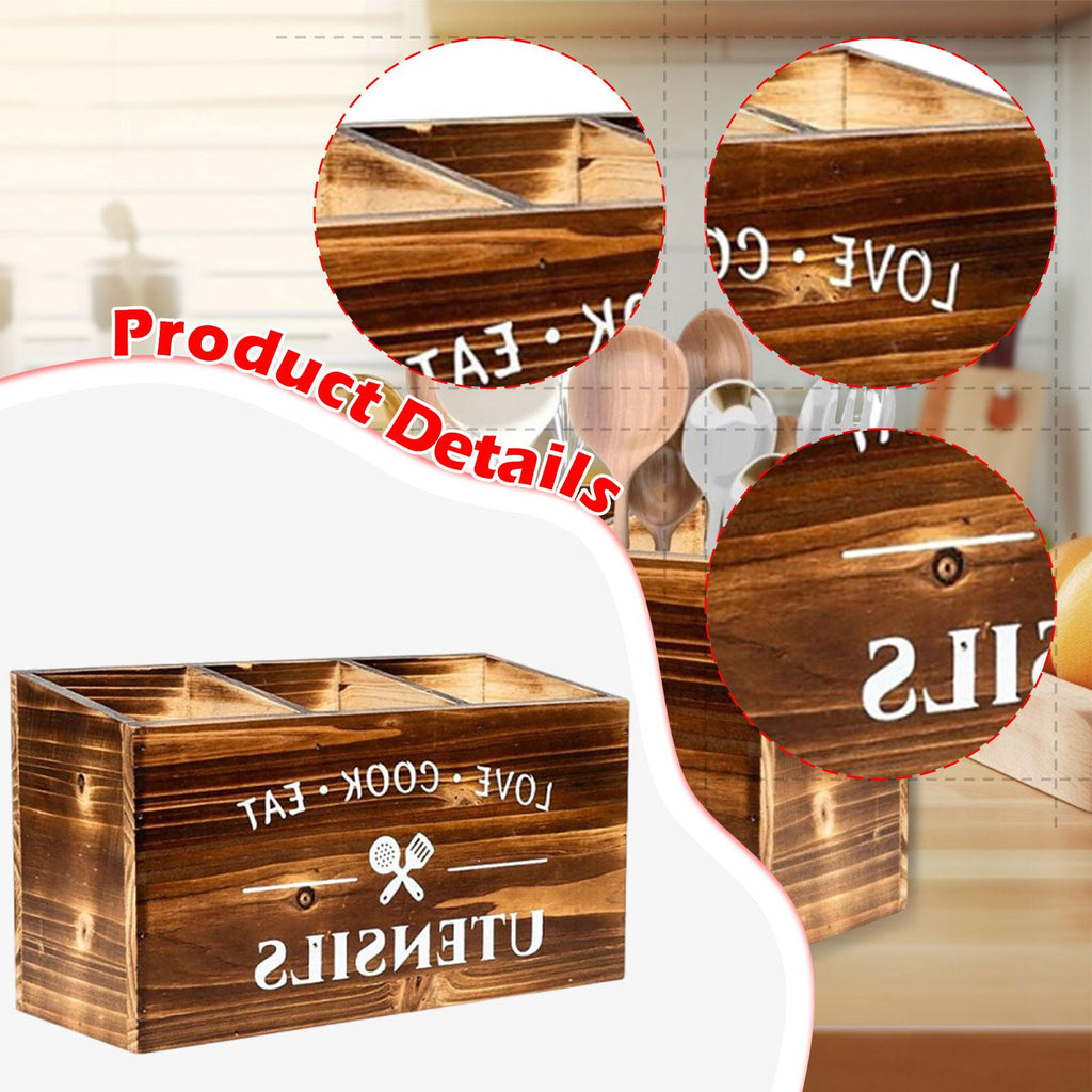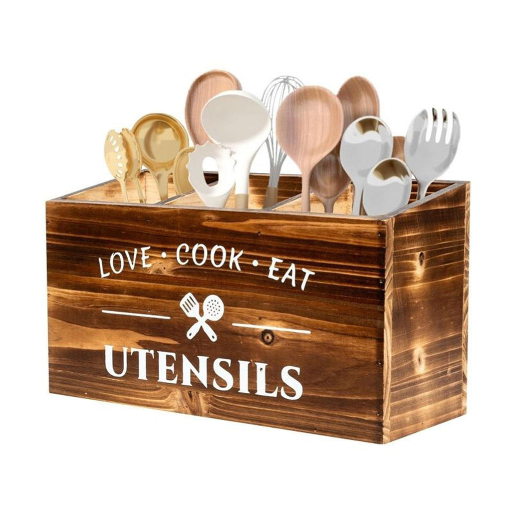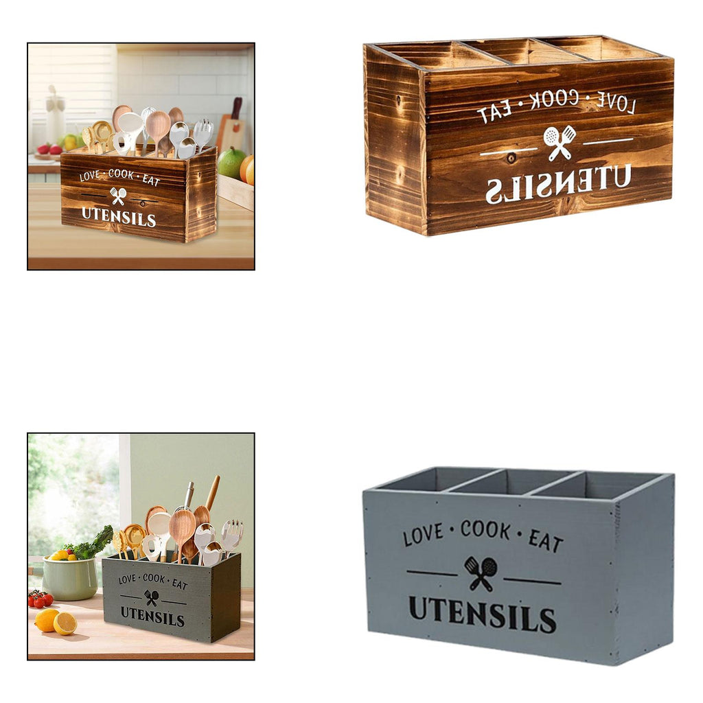 - 【Efficient Organization】: This wooden kitchen utensil organizer features three compartments, allowing you to neatly categorize and store your utensils for easy access and a tidy countertop. Dimensions: Approximately 30 cm x 12 cm x 17 cm / 11.81 inch x 4.72 inch x 6.69 inch