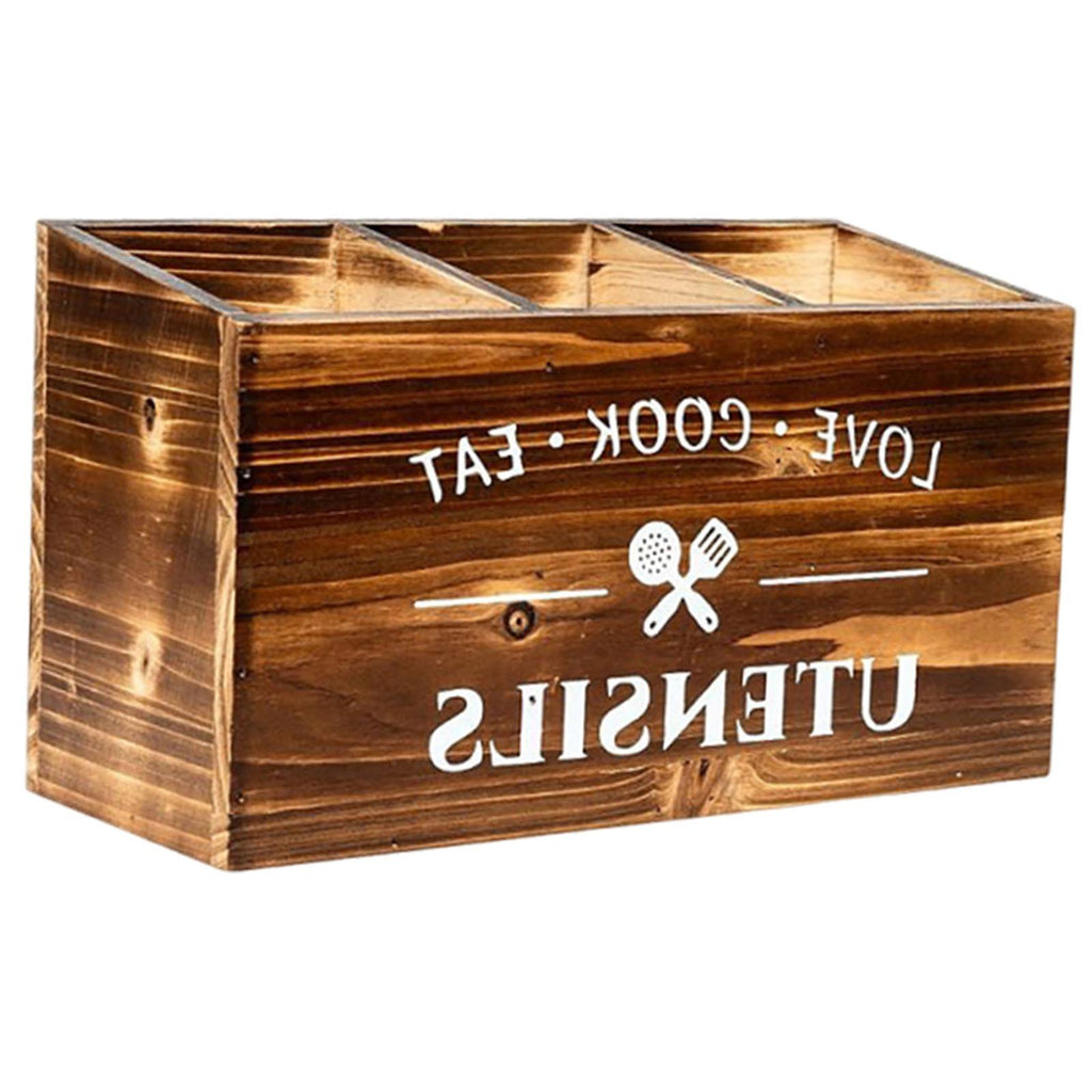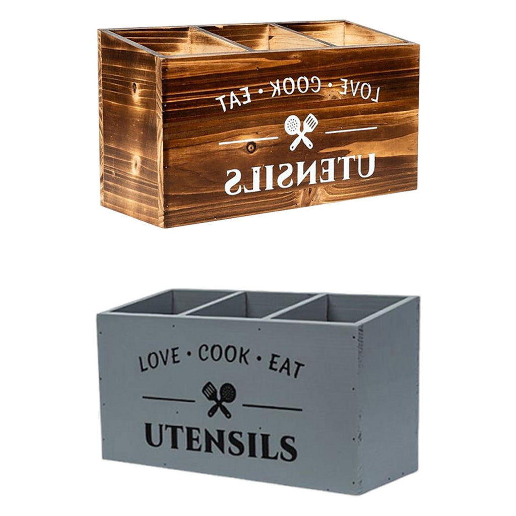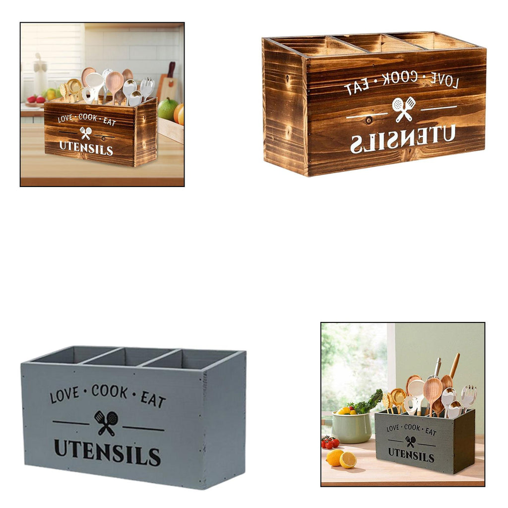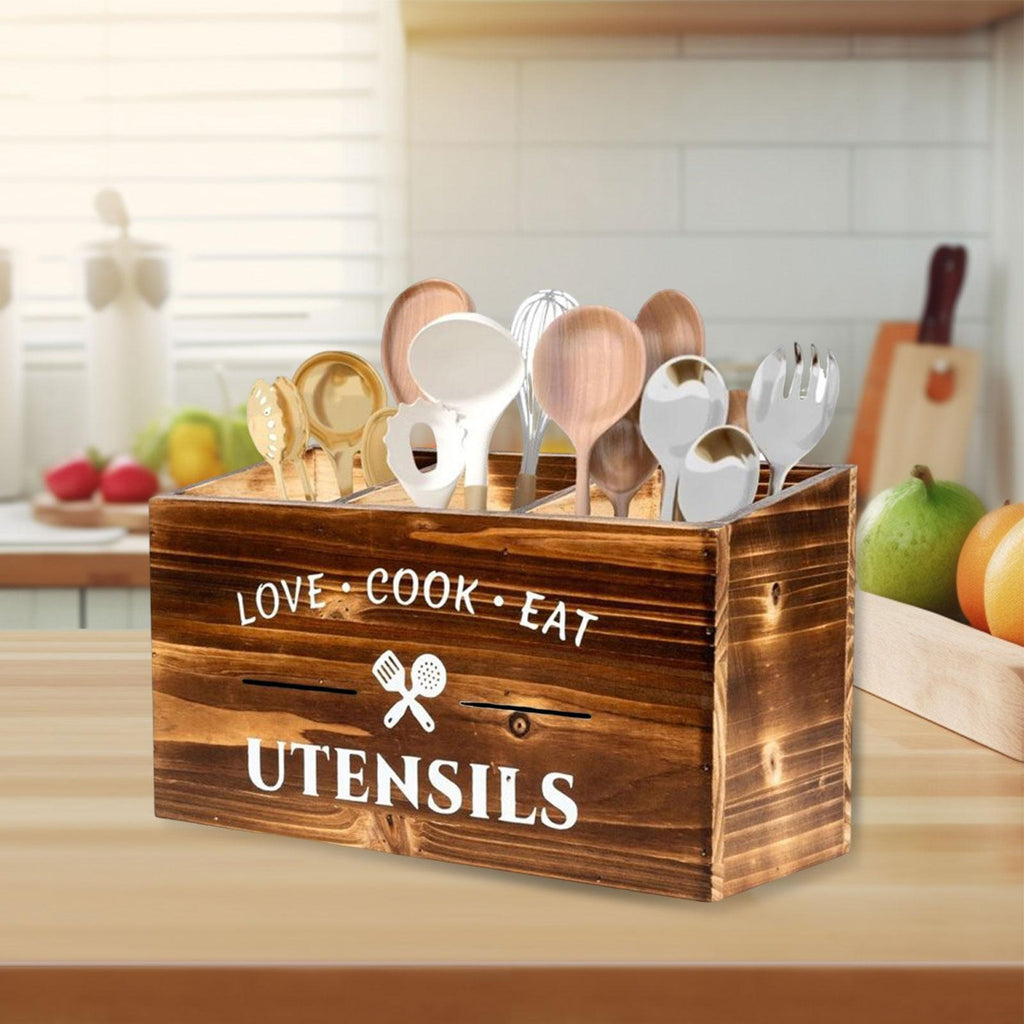 Kitchen Utensils Holder Wood Cutlery Silverware Holder for Cafe Home Cooking Brown