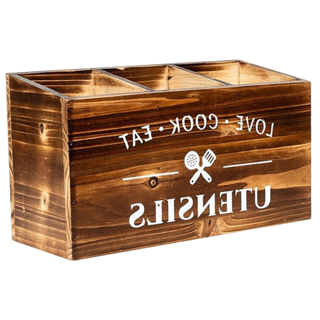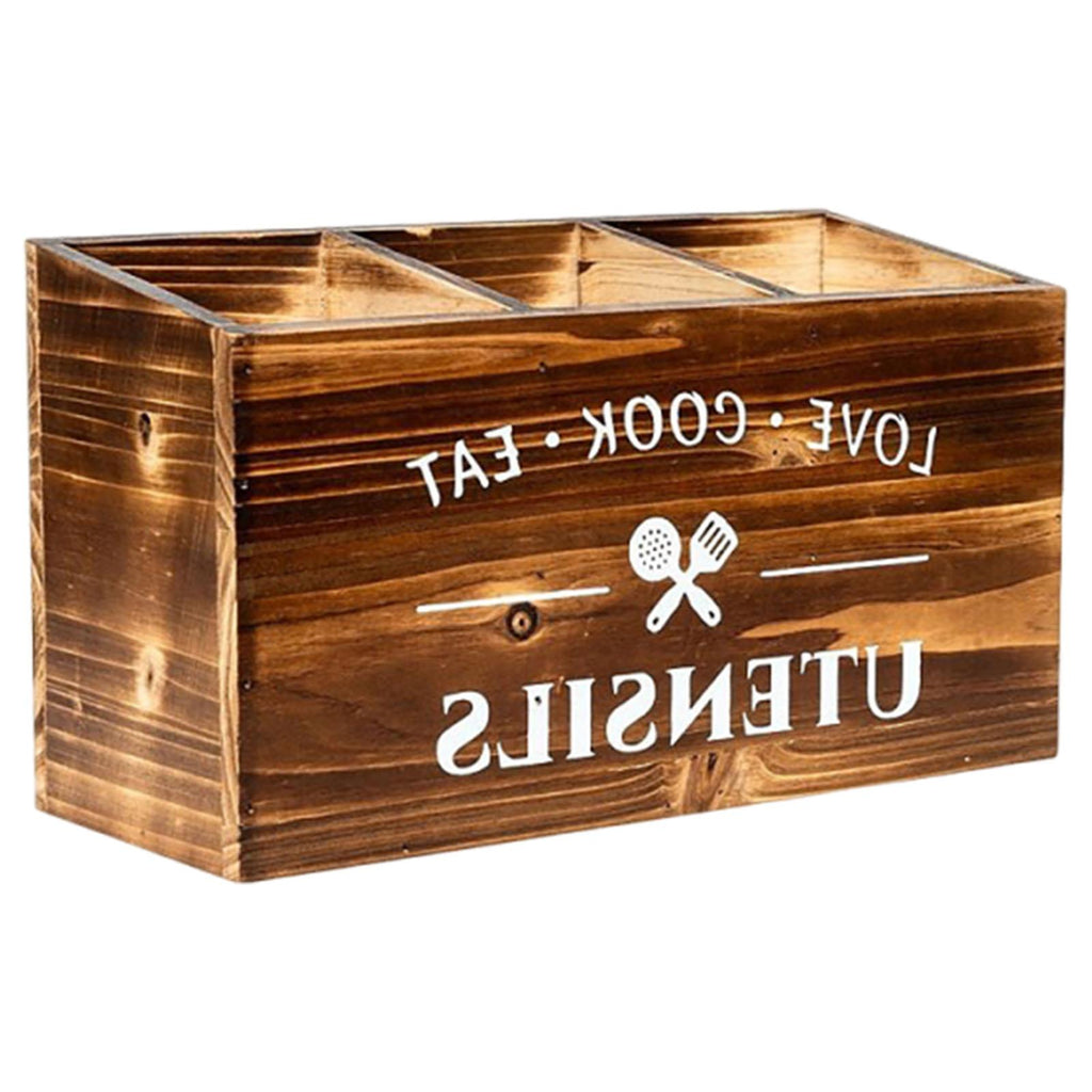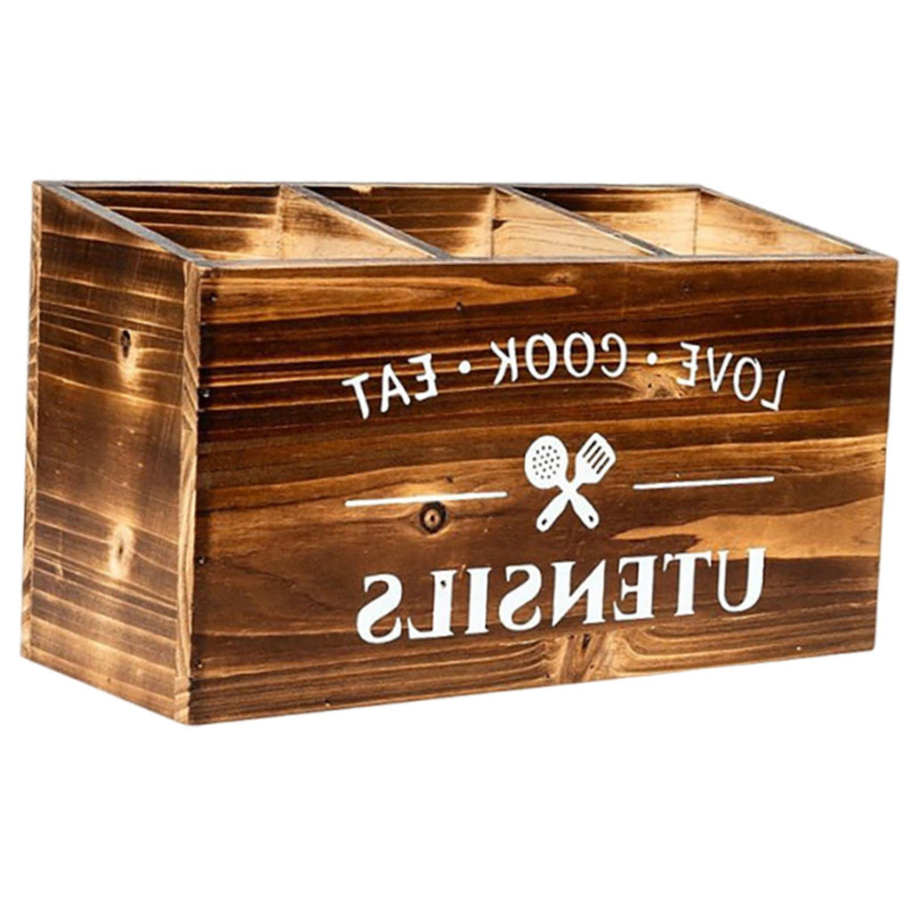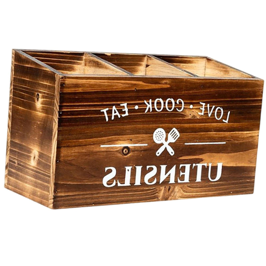 Kitchen Utensils Holder Wood Cutlery Silverware Holder for Cafe Home Cooking Brown