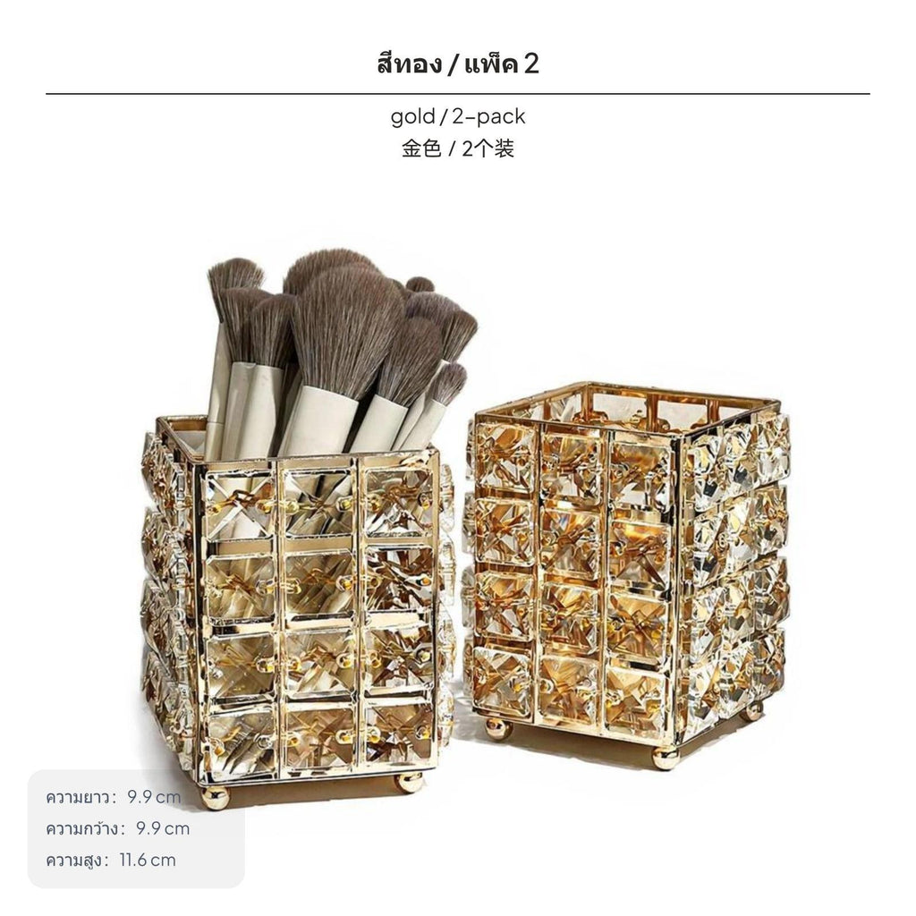 Large Crystal Makeup Brush Holder, PET Luxury Storage container, Desk Organizer for Brushes, Combs, Pens, Vanity Decor Gold 2 Pack