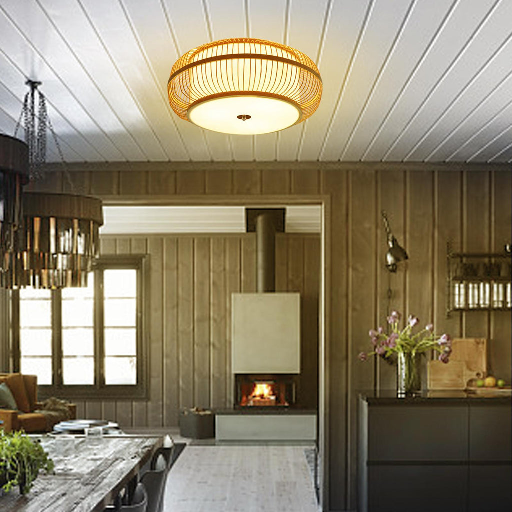 Ceiling Light: Elegant style bamboo chandelier, bamboo woven lampshade, simple and natural.