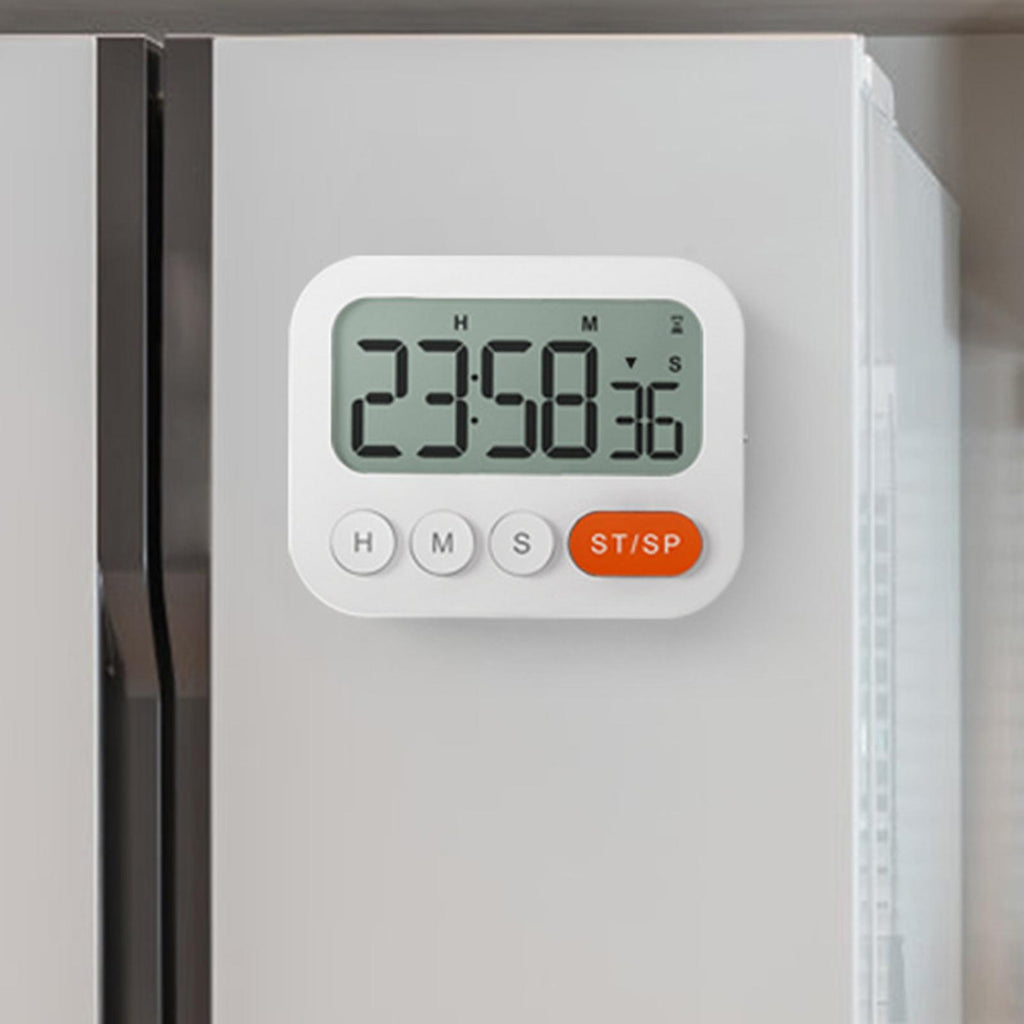 2 Ways to place this timer, countertop stand and magnetic backing suction on fridge.
