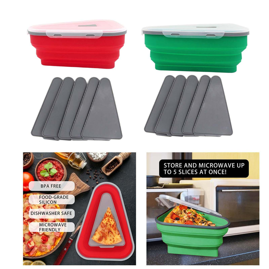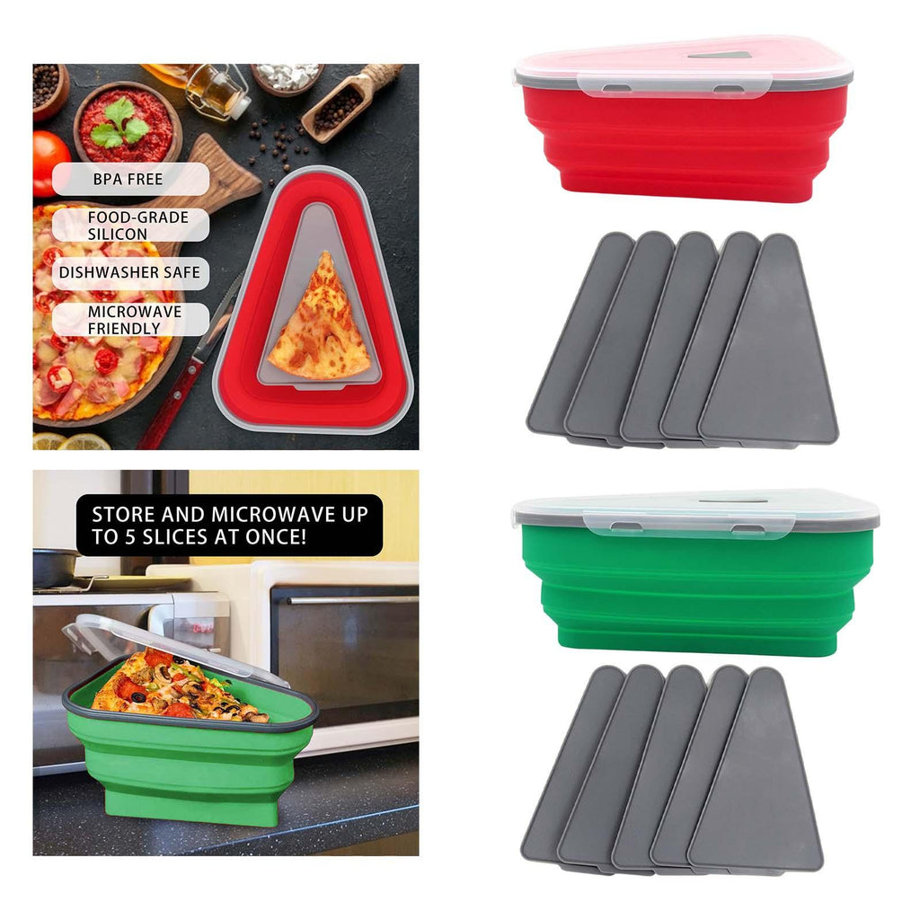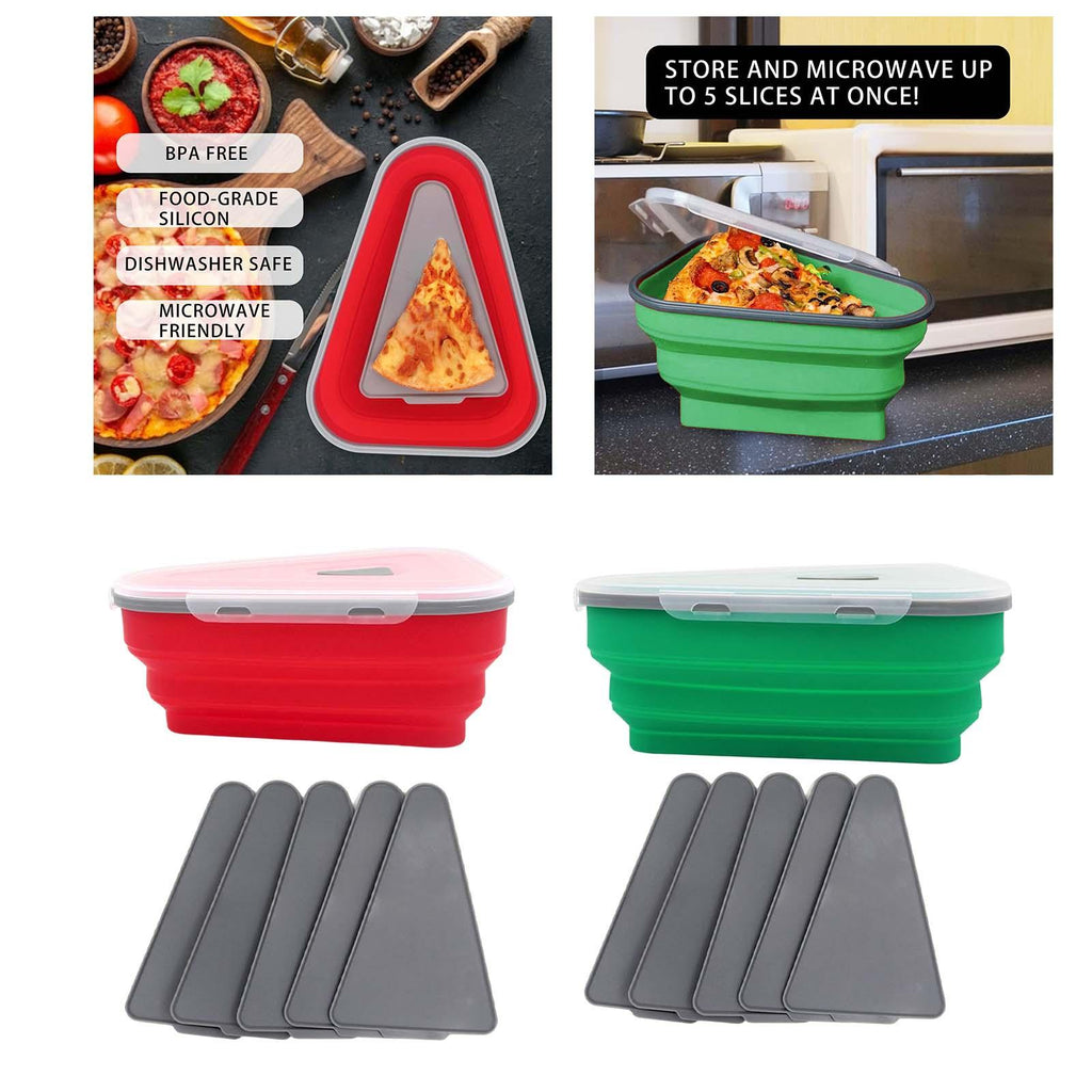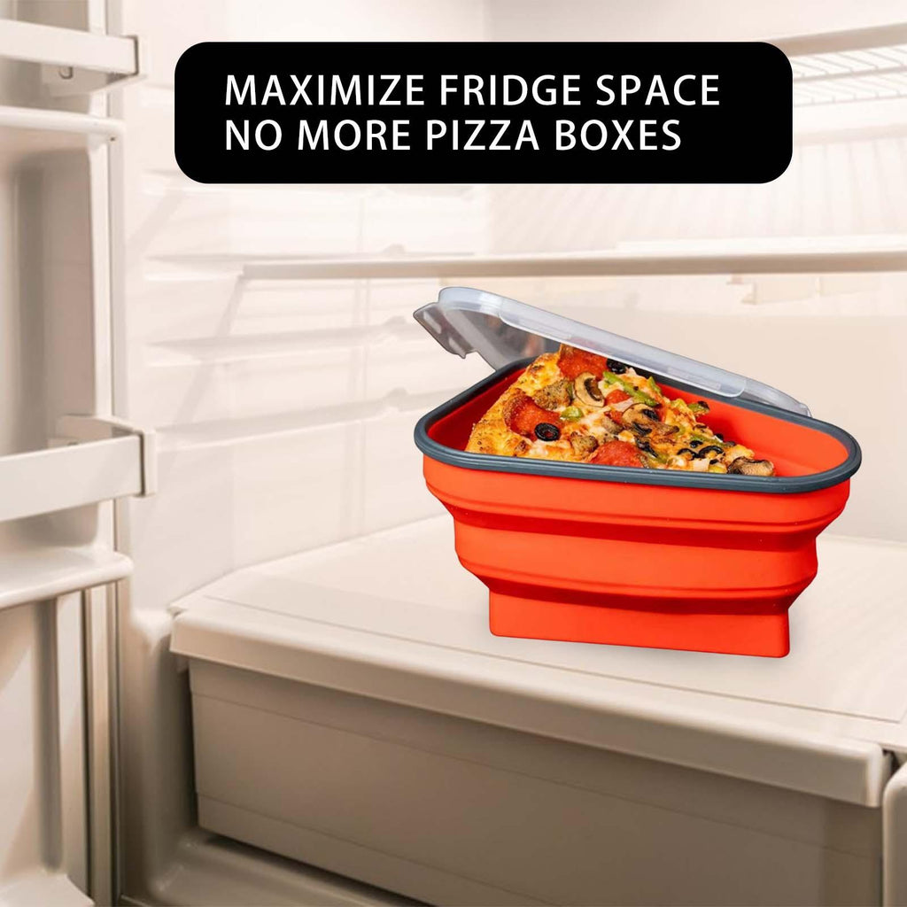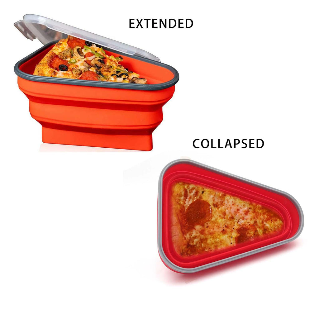 SPACE SAVER: Each pizza container collapses and expands to accommodate the number of pizza slices you have. Perfect for storing leftover pizza without a pizza box taking up the whole shelf!