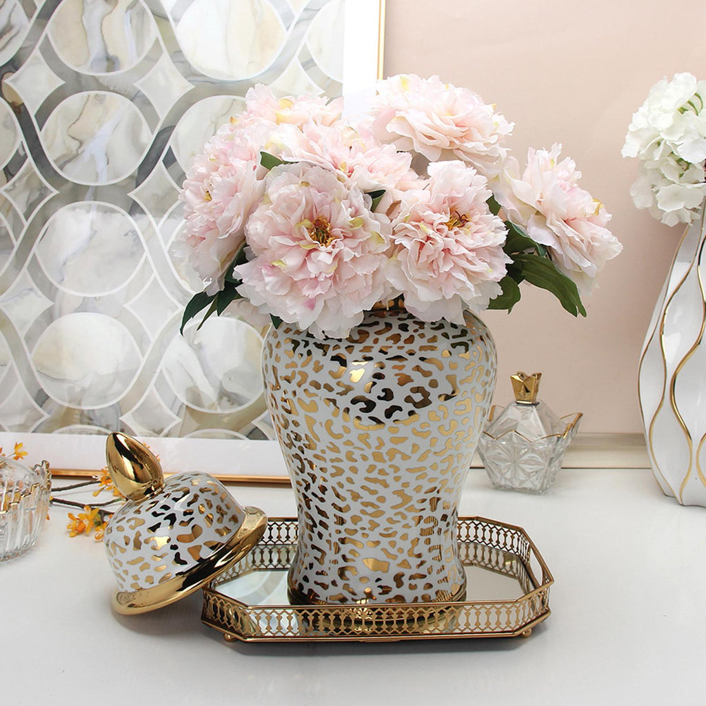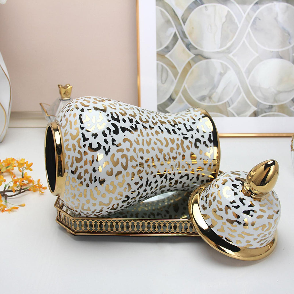 Maxbell Leopard Print Ginger Jar Glazed for Home Living Room Floral Arrangement
