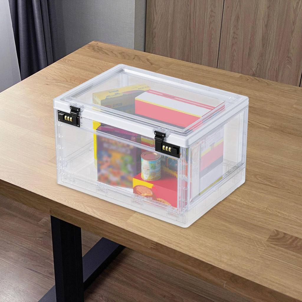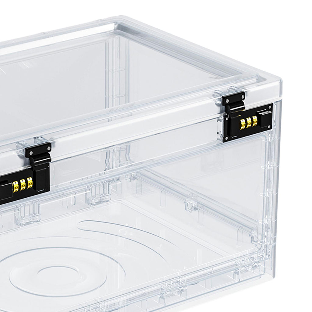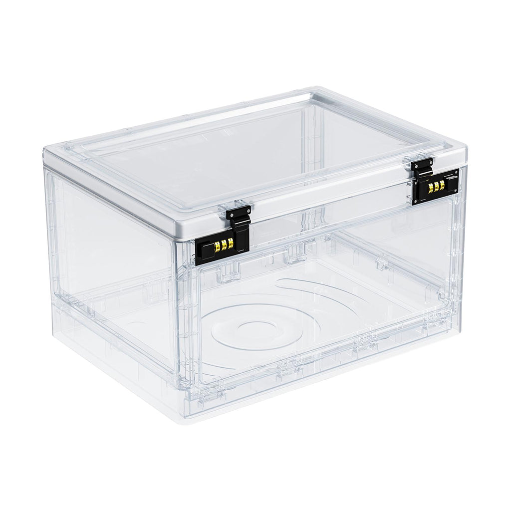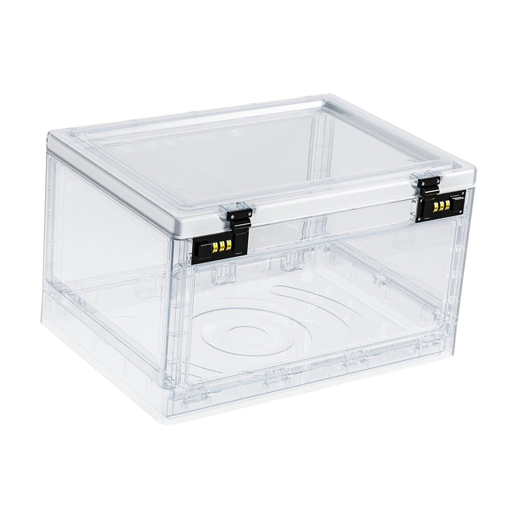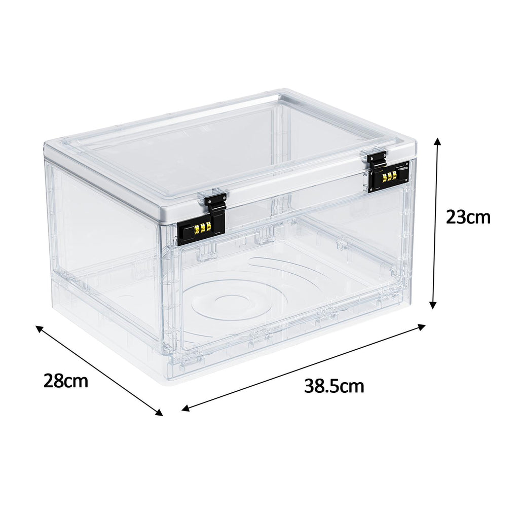 【Size】: Clear Lockable Storage Box measures 38.5cmx28cmx23cm, providing ample space for storing various items such as food, cosmetics, mobile phones or tablet.