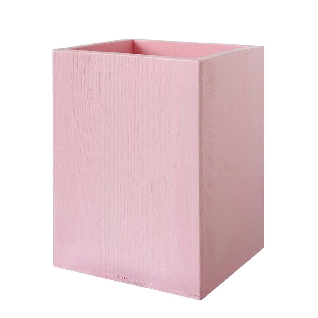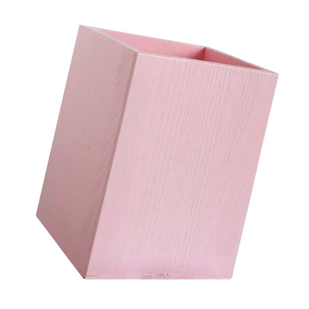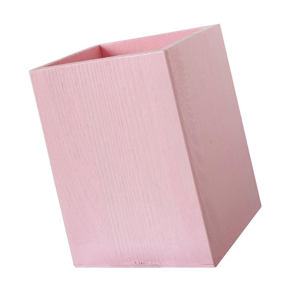 Maxbell Lovely Wooden Tabletop Storage Box Pen Container Brush Pot Pink Square