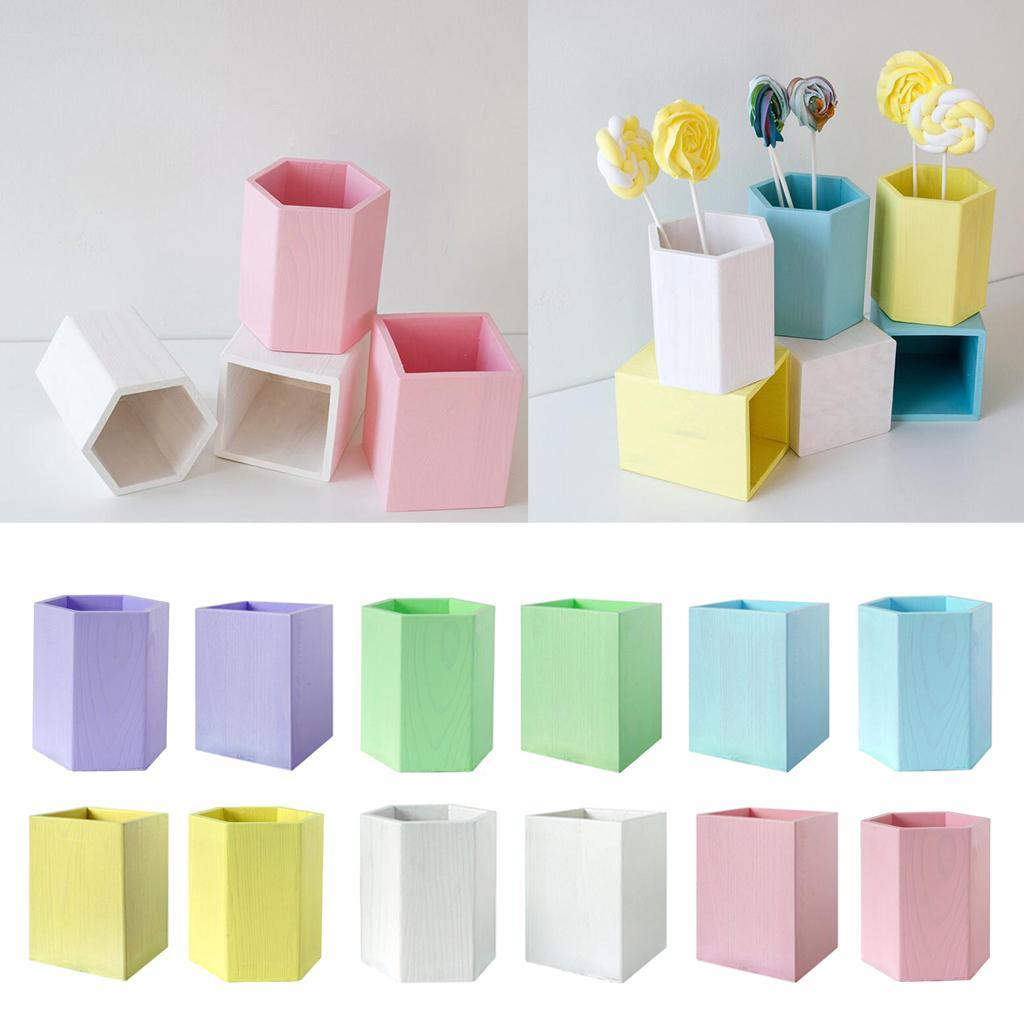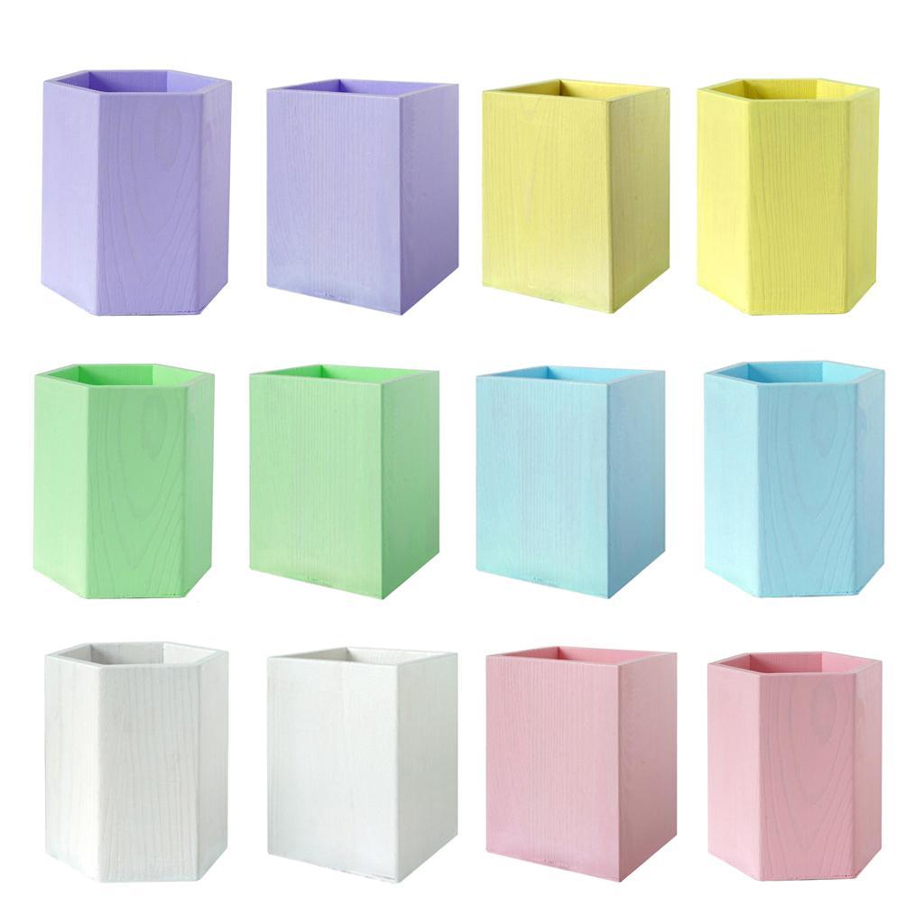 Maxbell Lovely Wooden Tabletop Storage Box Pen Container Brush Pot White Square