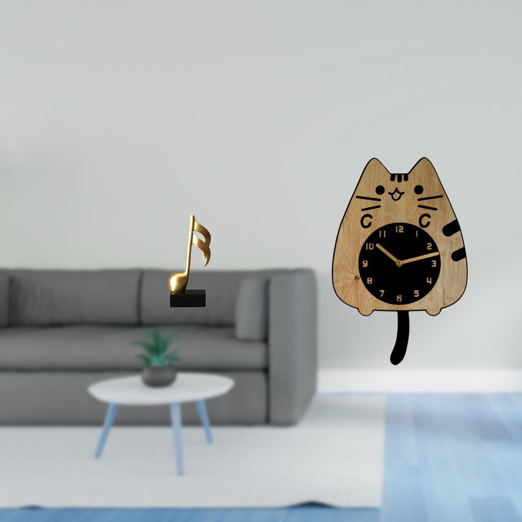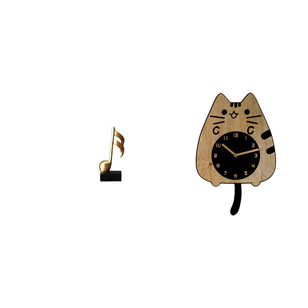 Melodic Feline Resin Tabletop Clock Sculpture Creative Musical Cat Ornament Silent Wall Hanging Centerpiece for Desk Kitchen Office Housewarming Gift