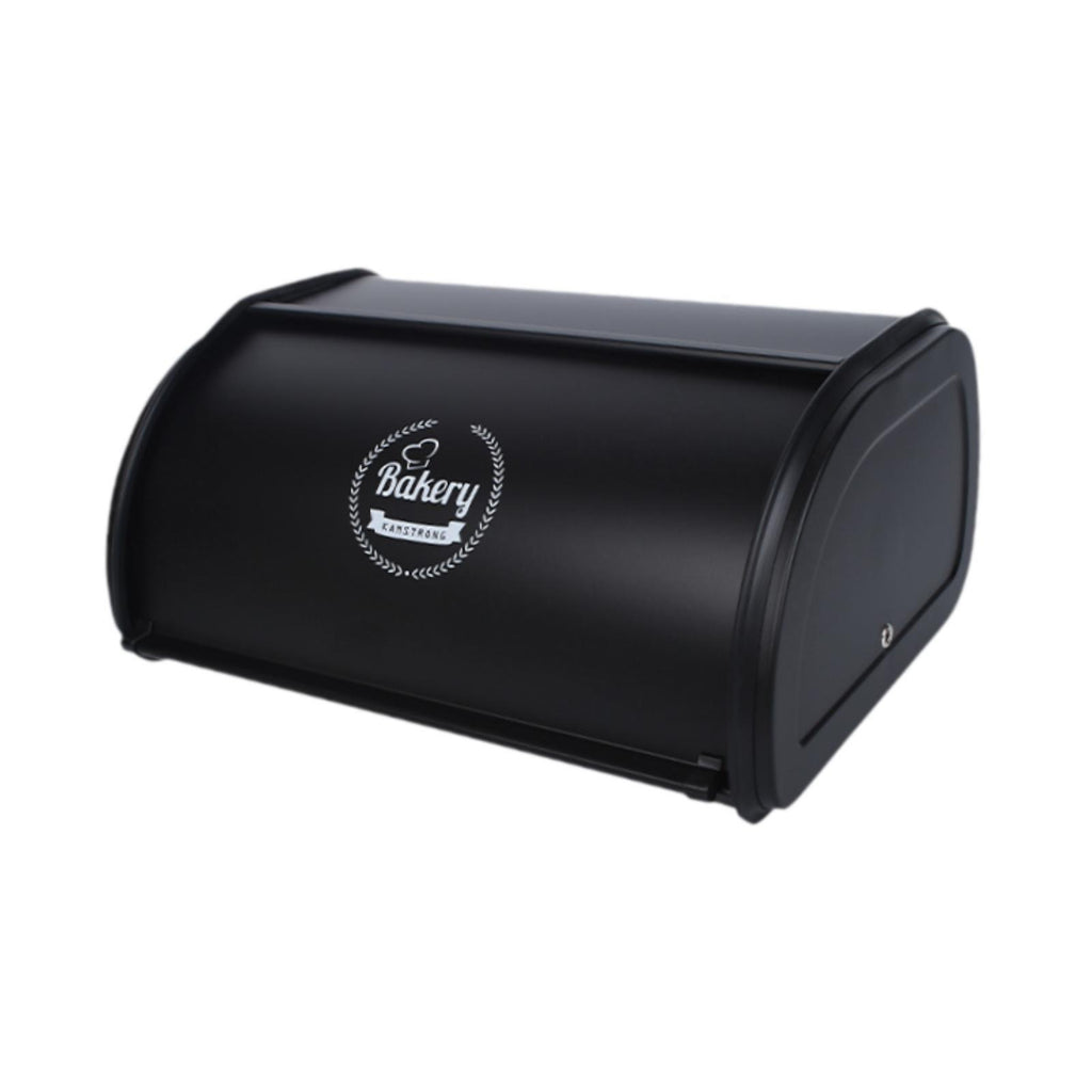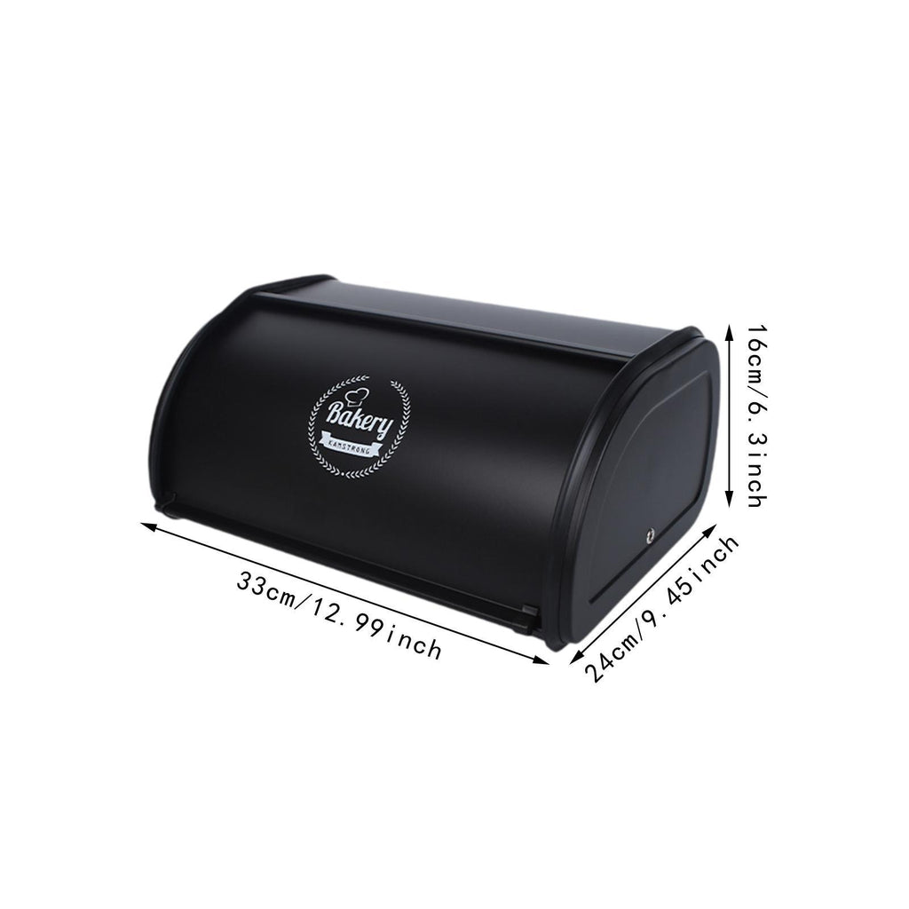 Maxbell Metal Bread Box Kitchen Counter Roll Top Bread Bin for Home Entrance Cookies Black