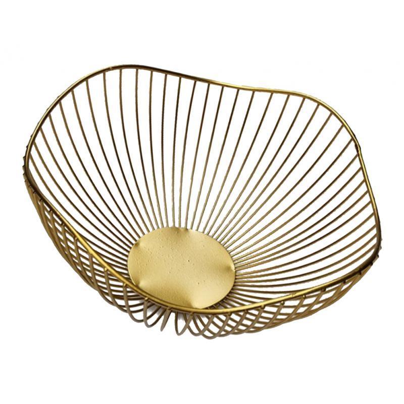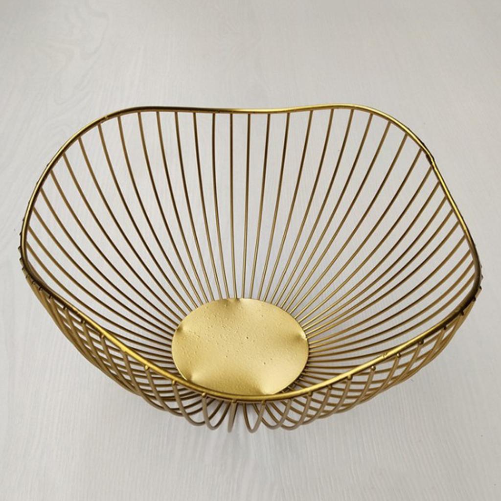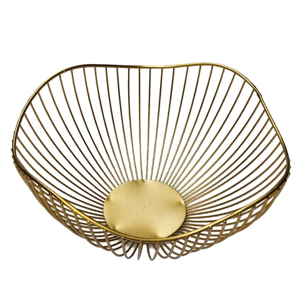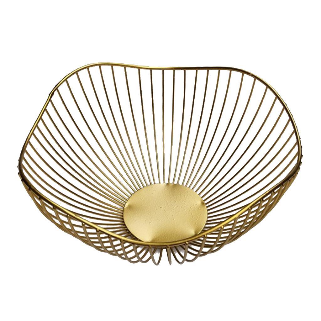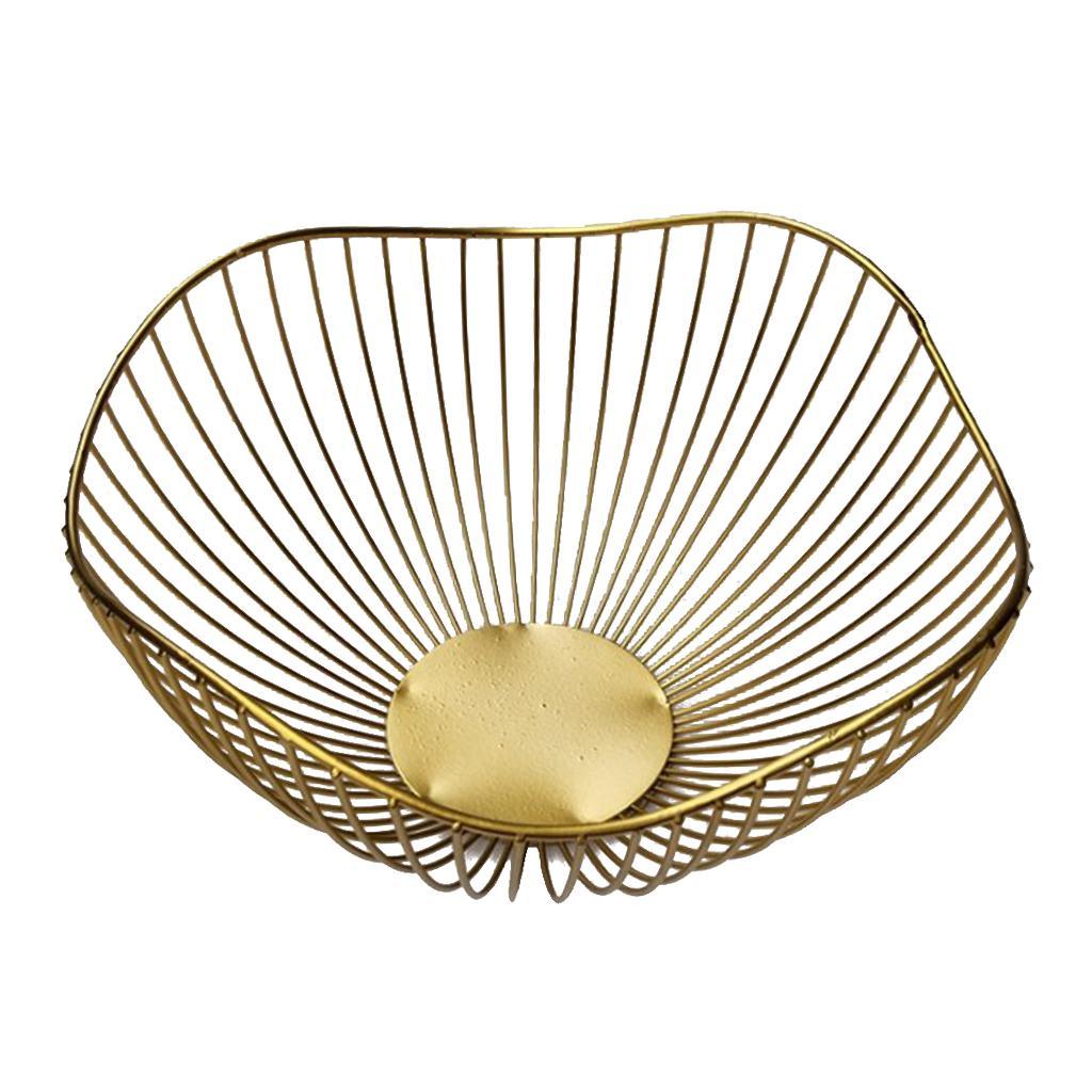 Maxbell Metal Wire Fruit Basket Bowl Candy Snack Storage Container Holder B_Gold_L