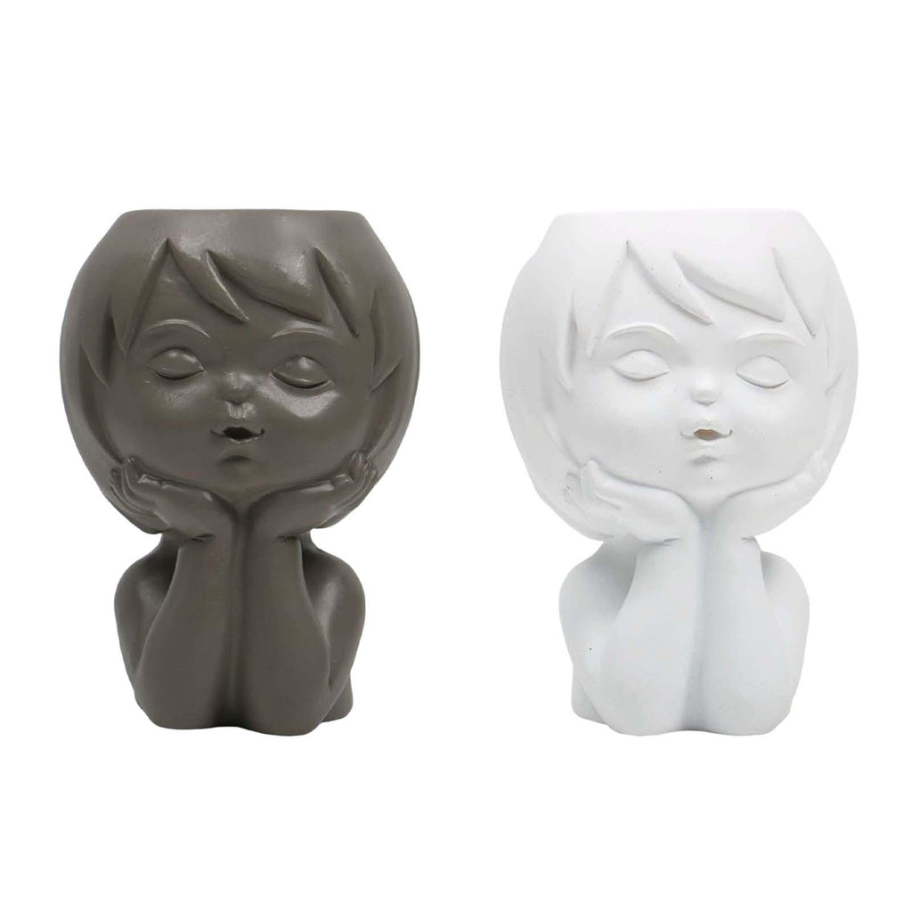 Maxbell Modern Flower Vase Planters Flower Pot Wedding Kitchen Human Head Statues Gray