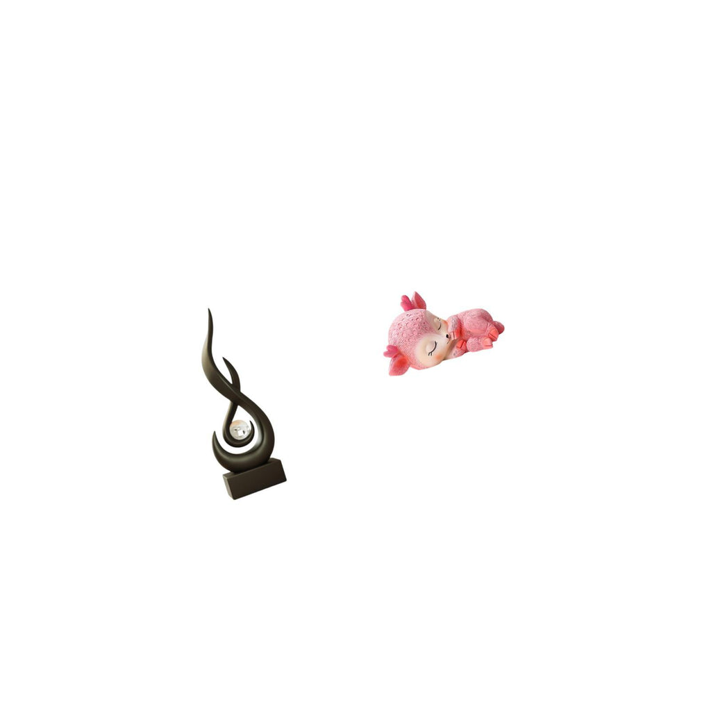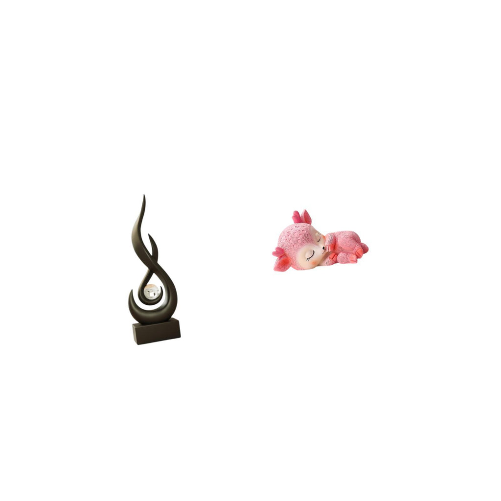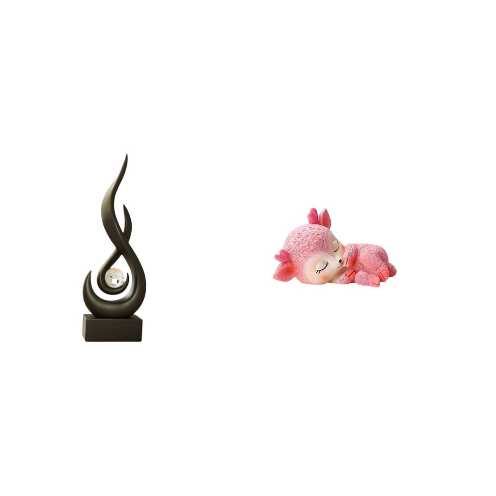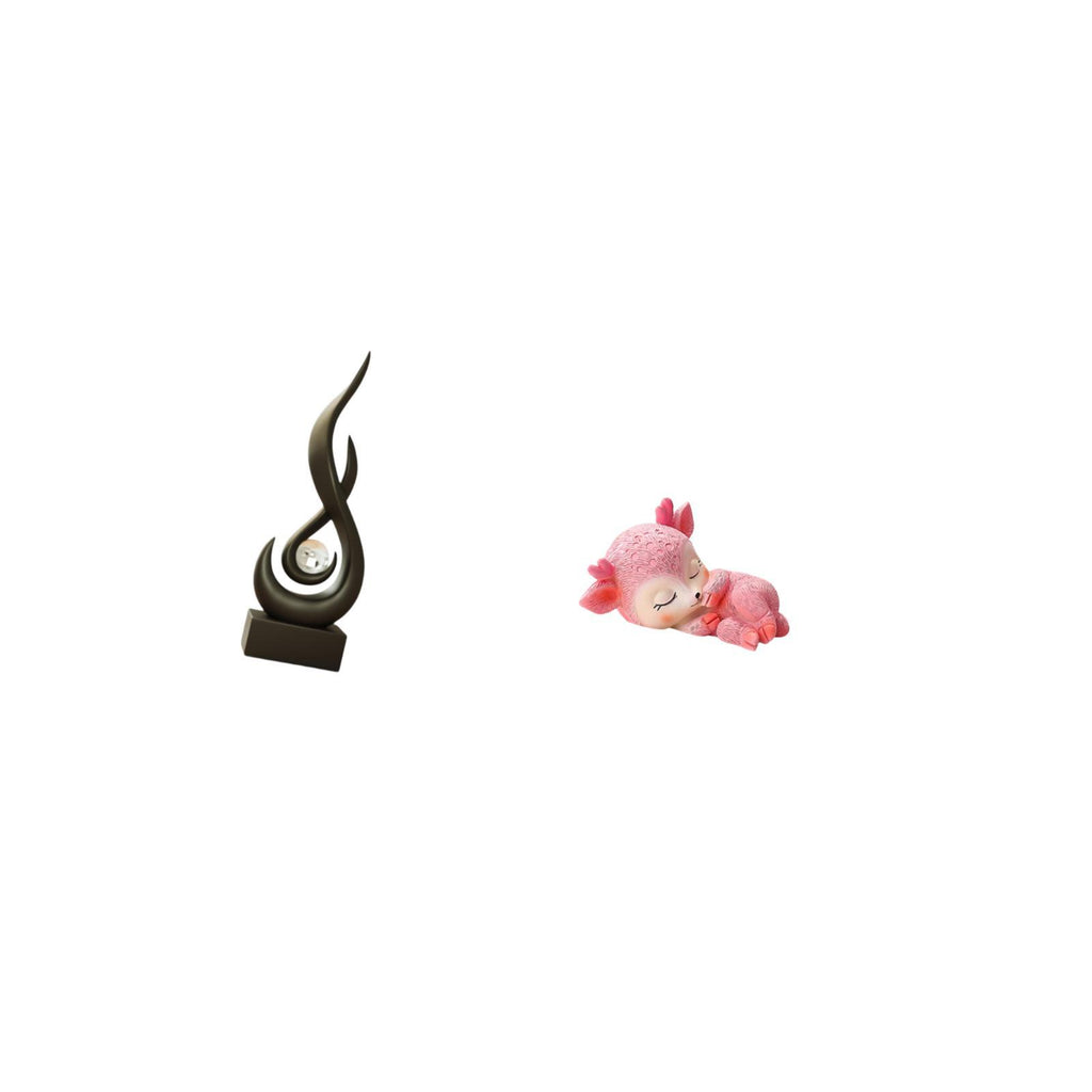 1 Abstract Fire Statue 1 Sleeping Deer Tabletop Statue