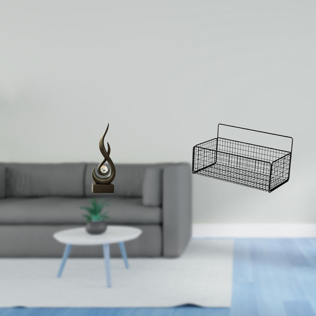 Modern Resin Flame Sculpture and Metal Wire Basket Floating Shelves for Living Room Cabinet Bathroom Kitchen Countertop Organizer