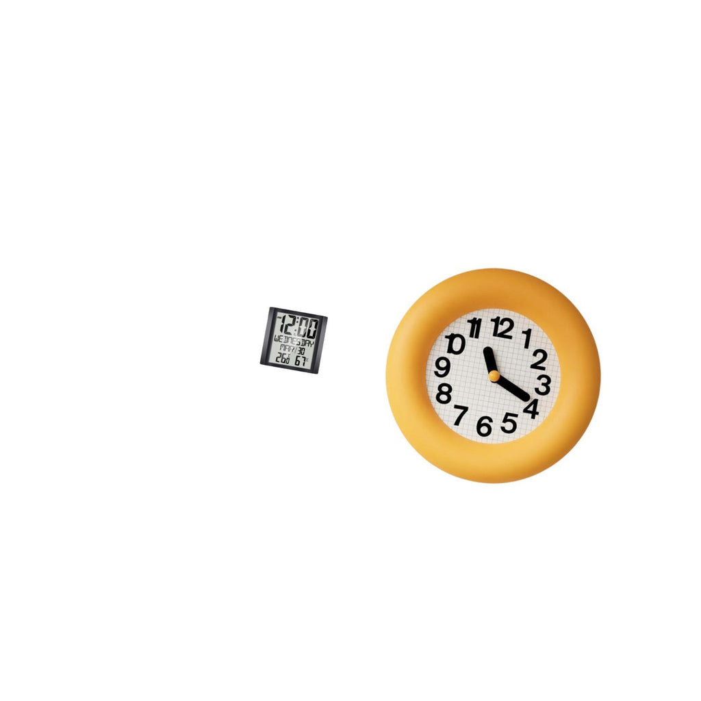 - 【Display】 Large screen wall clock shows time date indoor temperature and humidity levels
