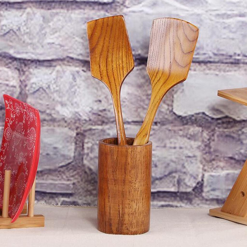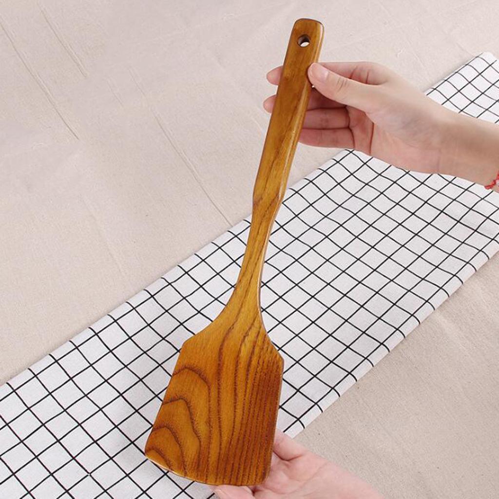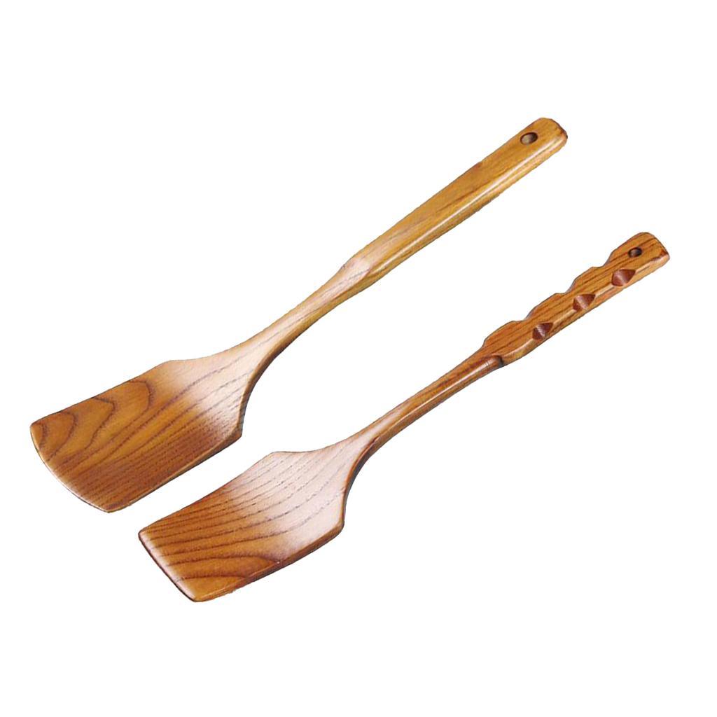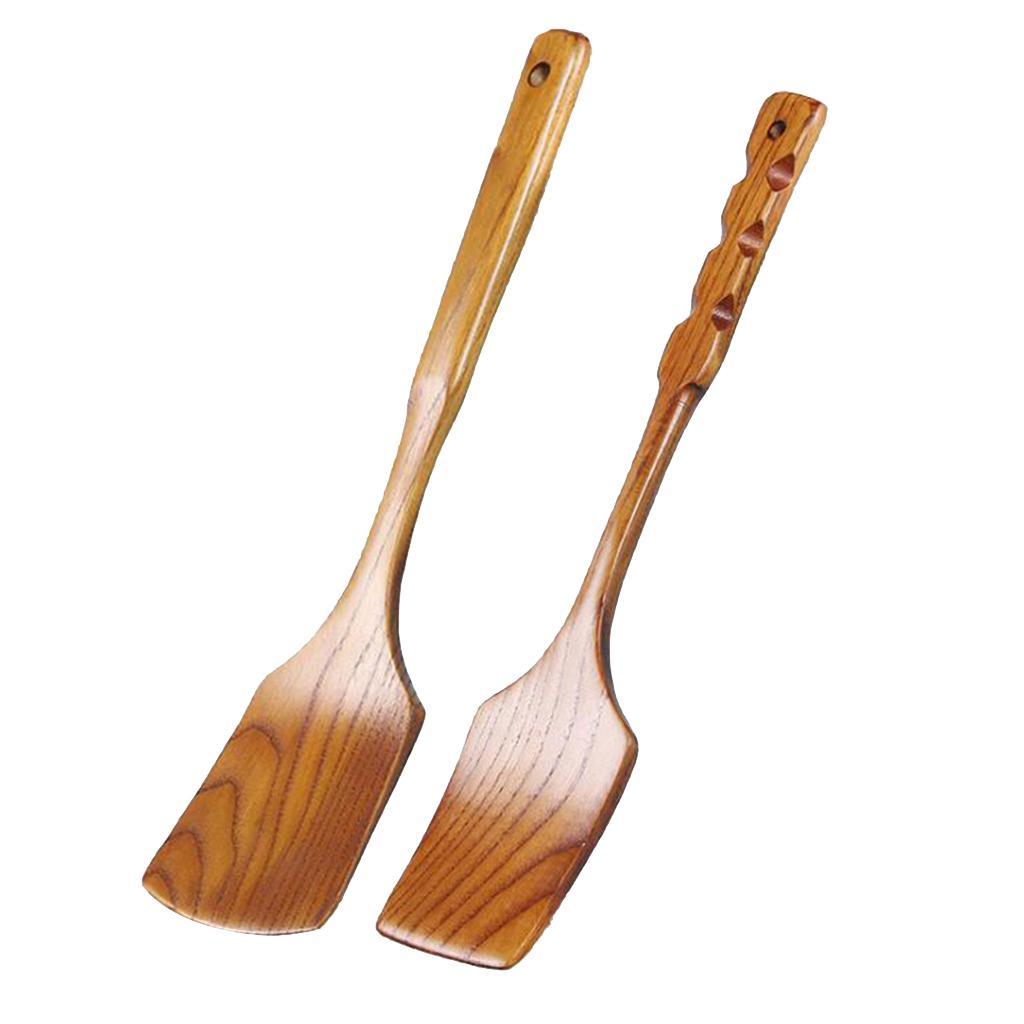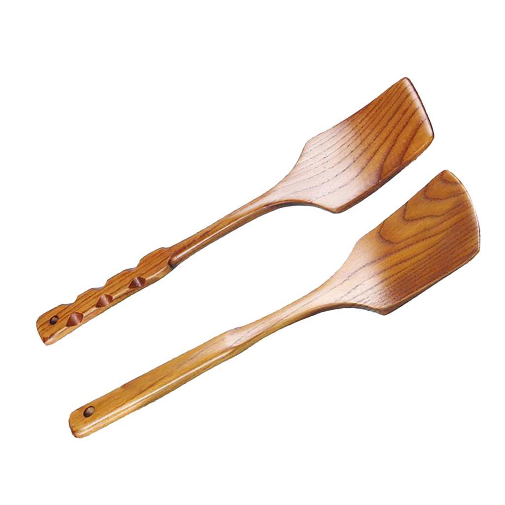 Maxbell Natural Solid Wooden Slice Turner Kitchen Cooking Serving Wood Spatula A
