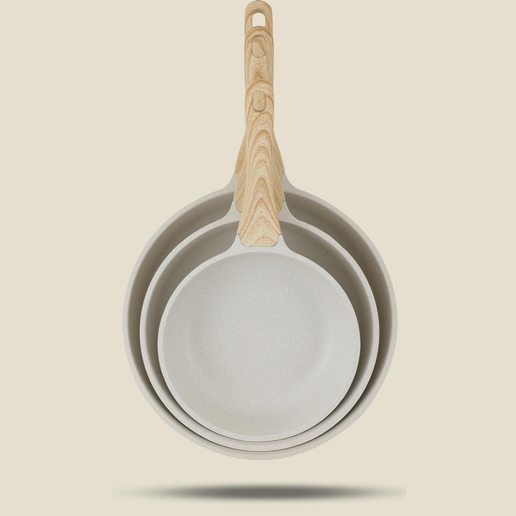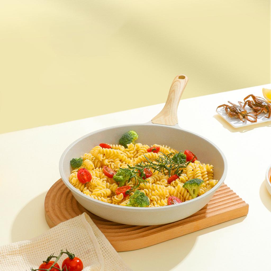 Maxbell Nonstick Frying Pan Stone White with Handle Granite Coating for Kitchen Diameter 24cm