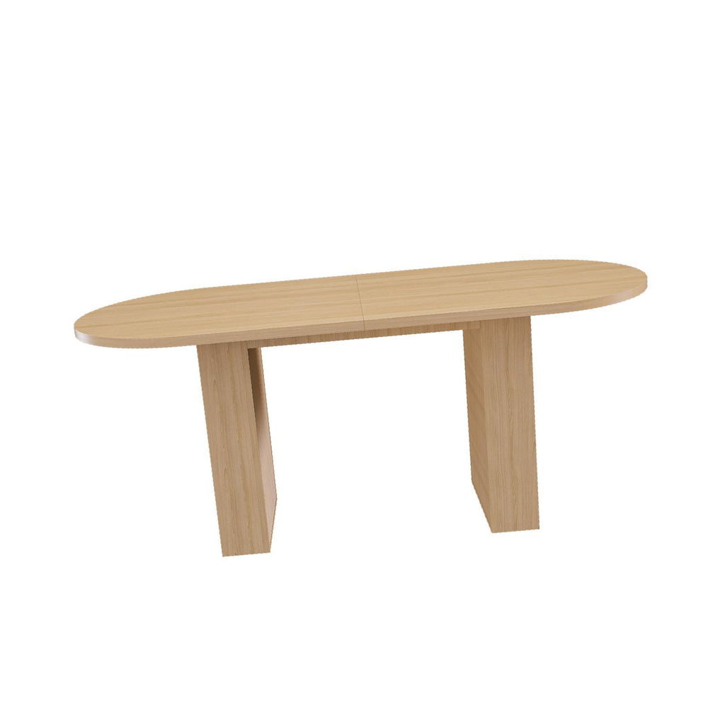 - RUSTIC FARMHOUSE : This generously sized kitchen table showcases a charming oval design and a gracefully contoured base. Its simple yet sophisticated effortlessly enhances both kitchens and living areas, making it perfect for everyday meals or hosting gatherings. The base is artfully surrounded by wooden strips, achieving an ideal balance of refined elegance and sturdy support, allowing it to harmonize with a wide range of interior décors.