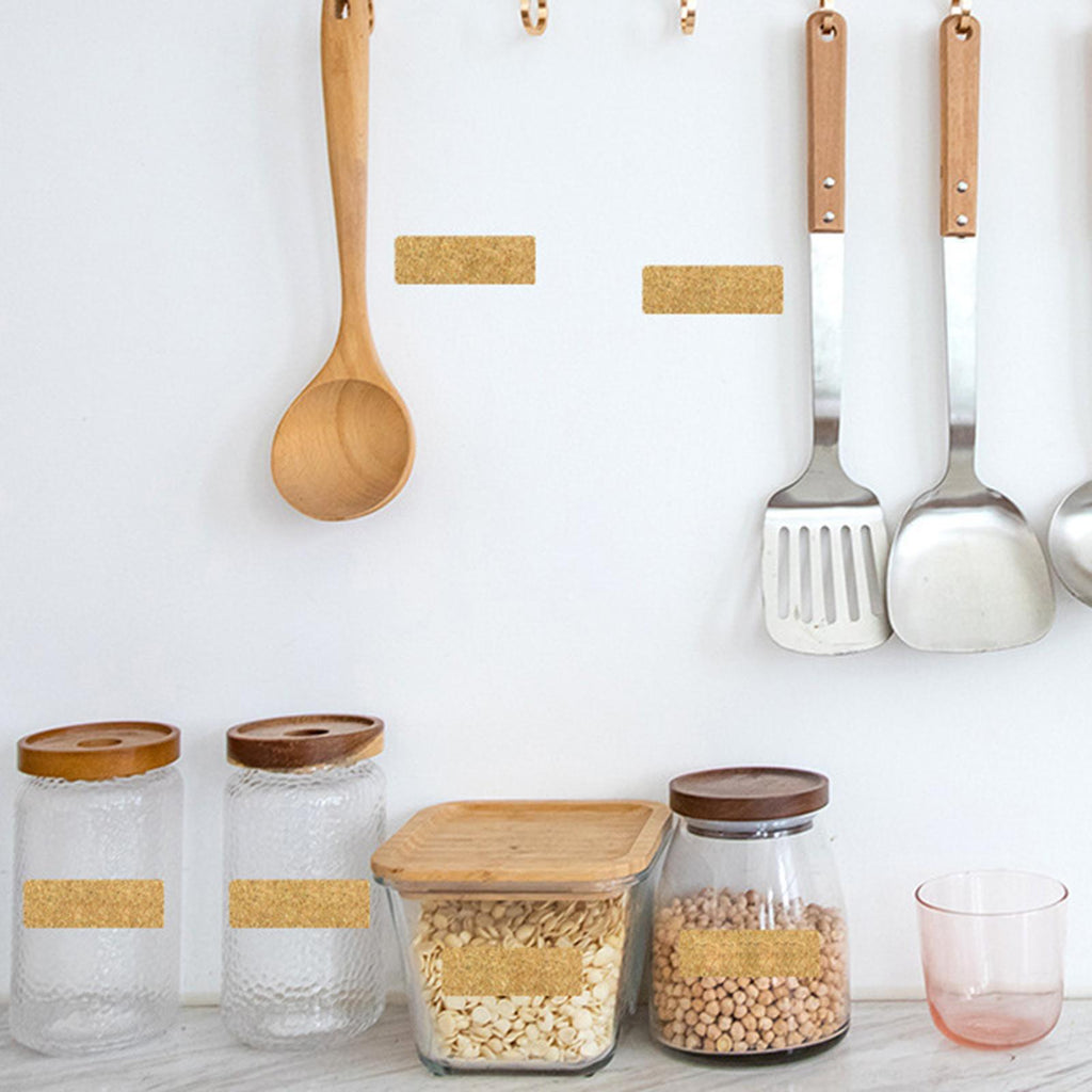 Our food storage labels are golden clear background that allows you to identify and organize ingredients with ease.