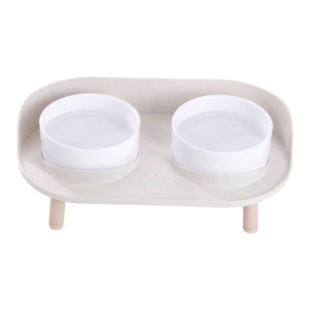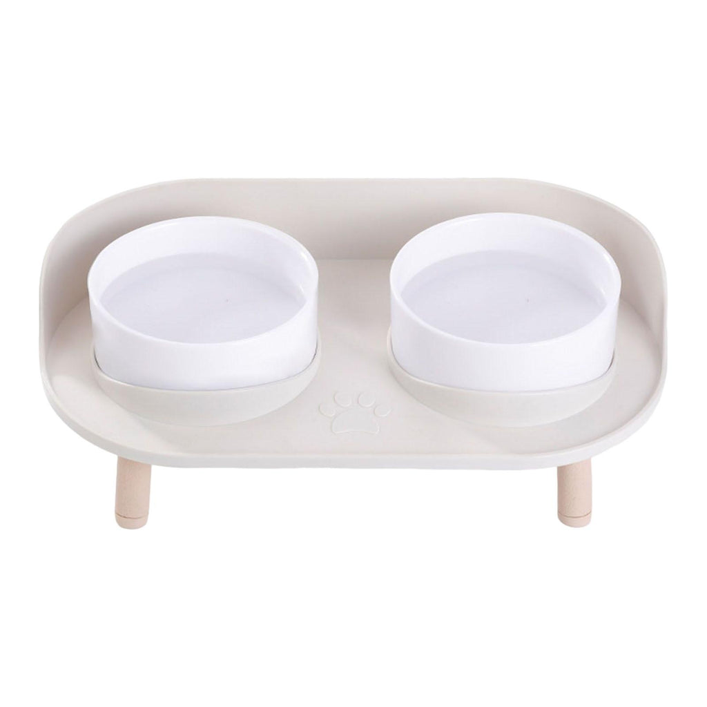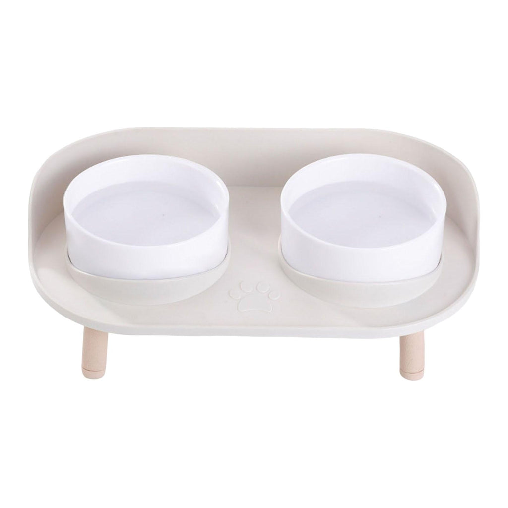 Maxbell Pet Dog Bowl Stand 2 Modes Height Pet Bowls Elevated Feeder Food Container Beige