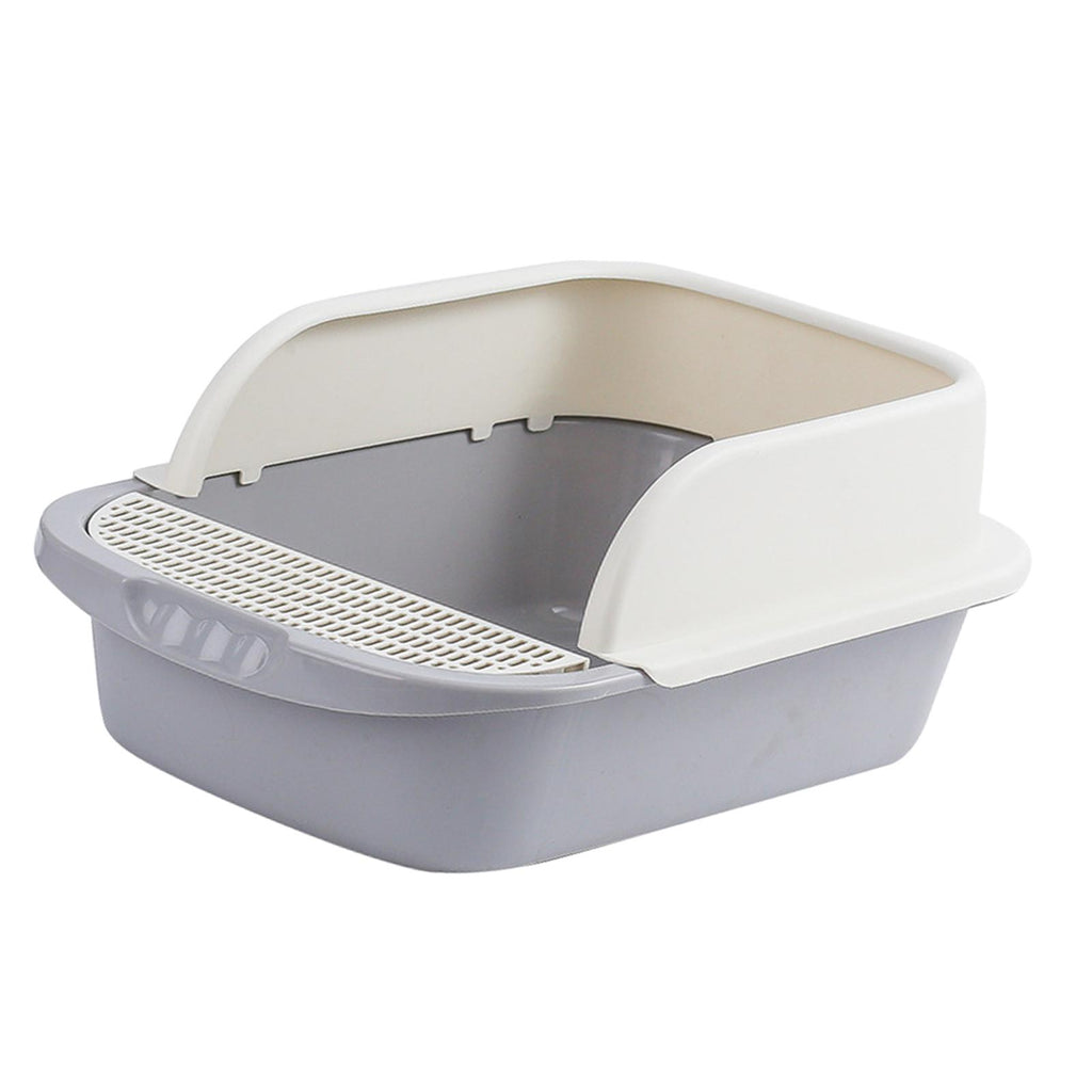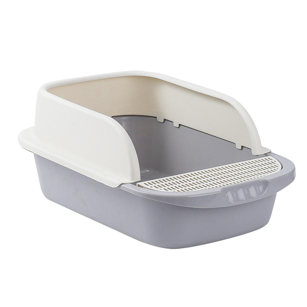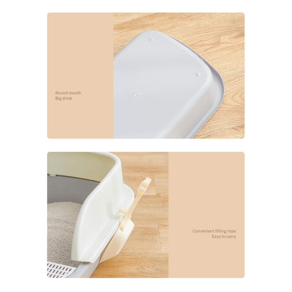 Maxbell Pet Litter Tray Sand Box Container Open Top Bedpan Cat Litter Box with Scoop White Gray