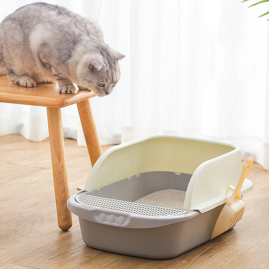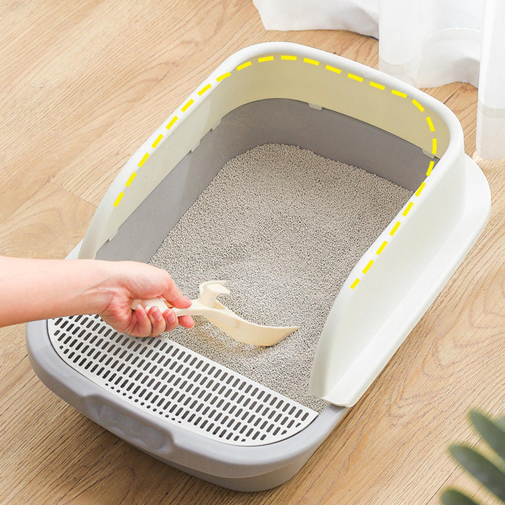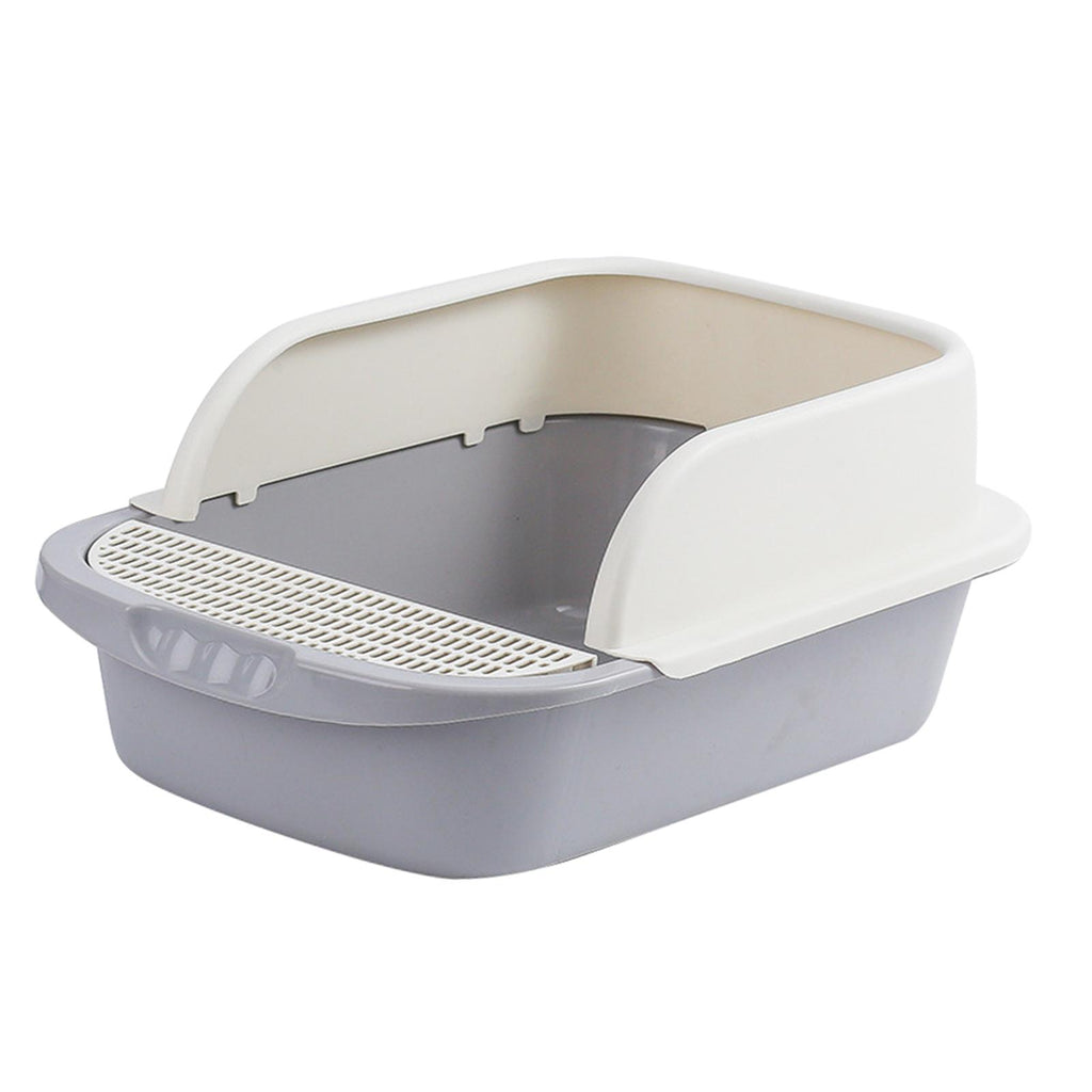 Maxbell Pet Litter Tray Sand Box Container Open Top Bedpan Cat Litter Box with Scoop White Gray
